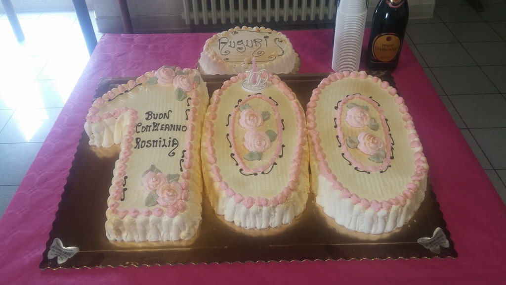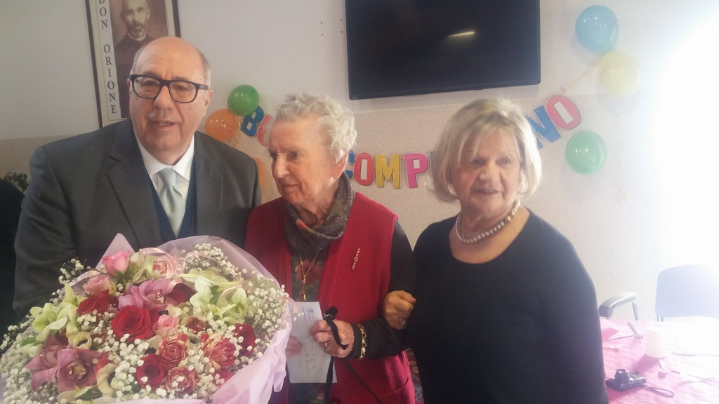 La Professoressa Rosmilia Torretto ha compiuto ieri 100 anni. Per l’occasione tutto il Don Orione si è mobilitato per festeggiarla. L’educatrice sociale Angela, ha addobbato con splendidi festoni artigianali, il salone del 6° piano.