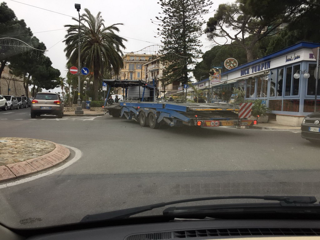 Lascia l’auto parcheggiata in divieto in corso Nazario Sauro per andare a prendere i figli a scuole ed una bisarca non riesce a svoltare verso Ponente.