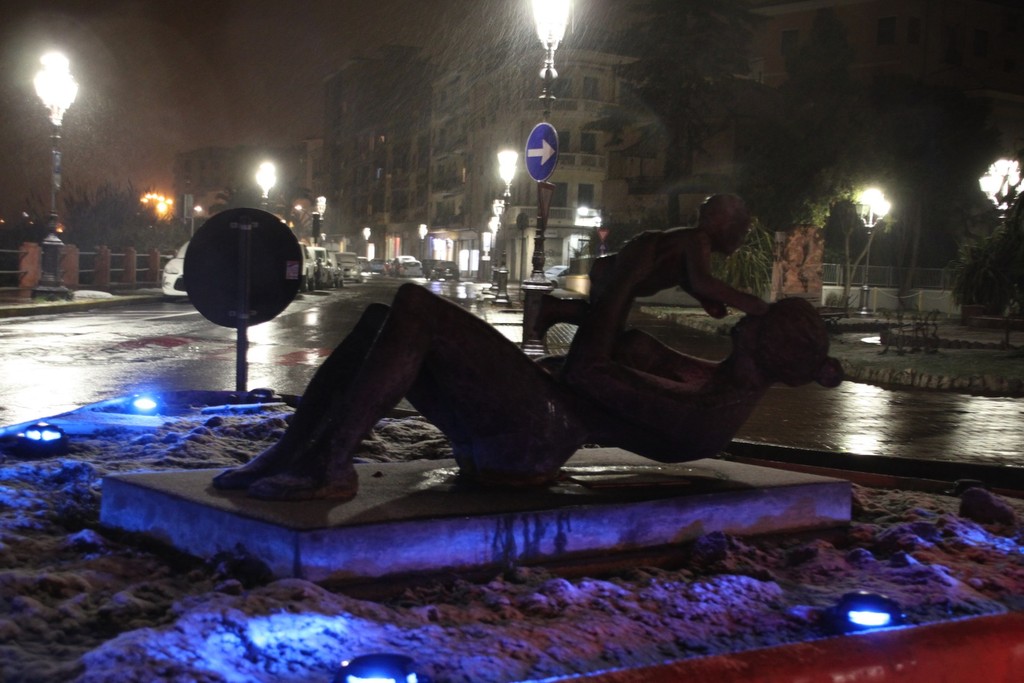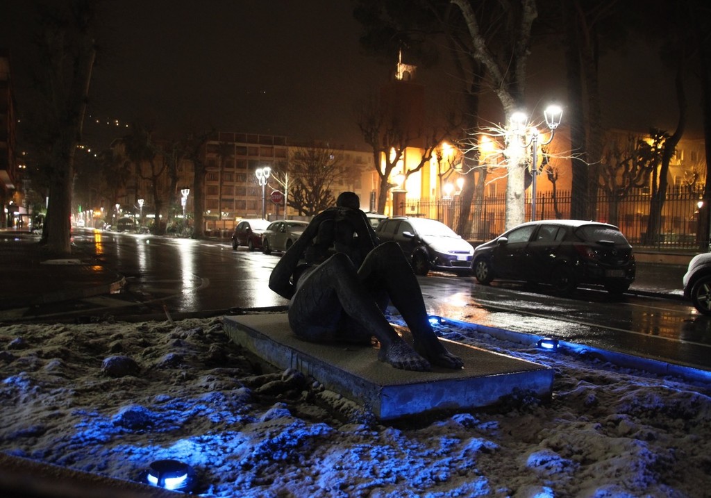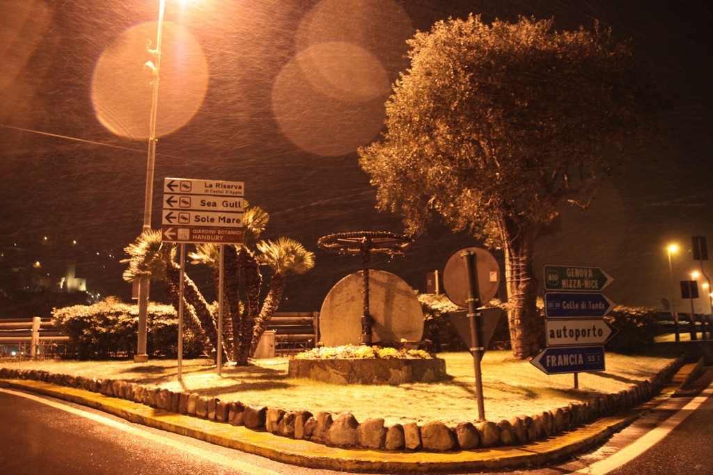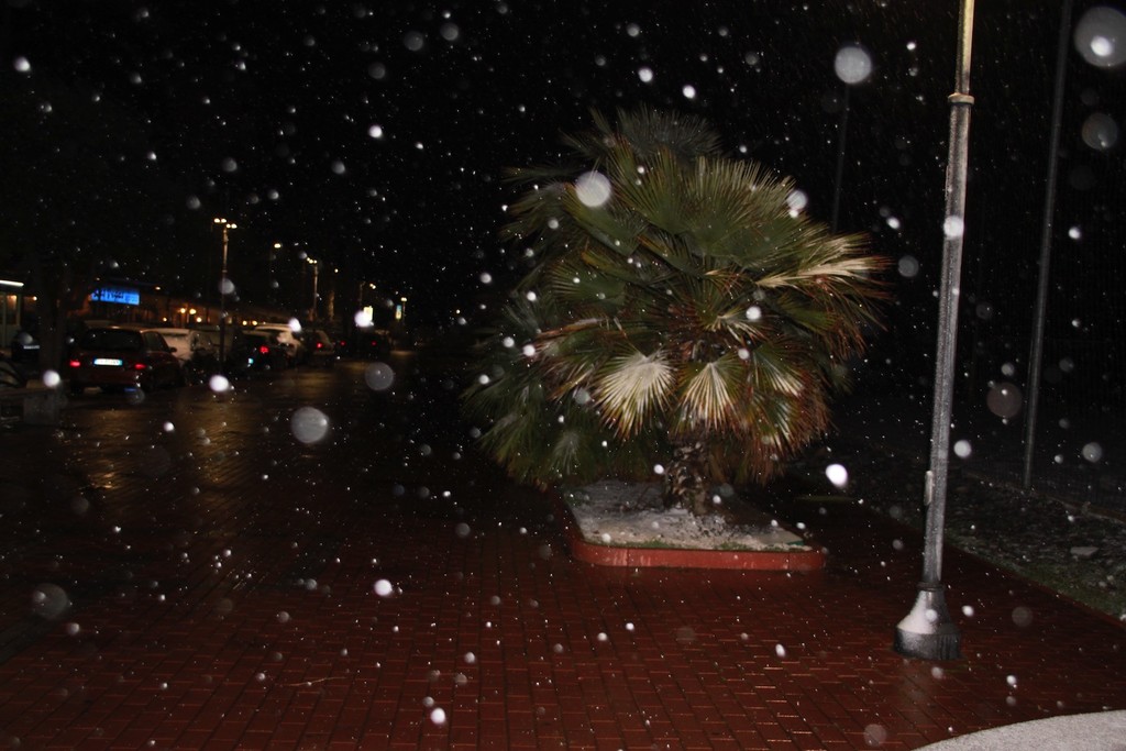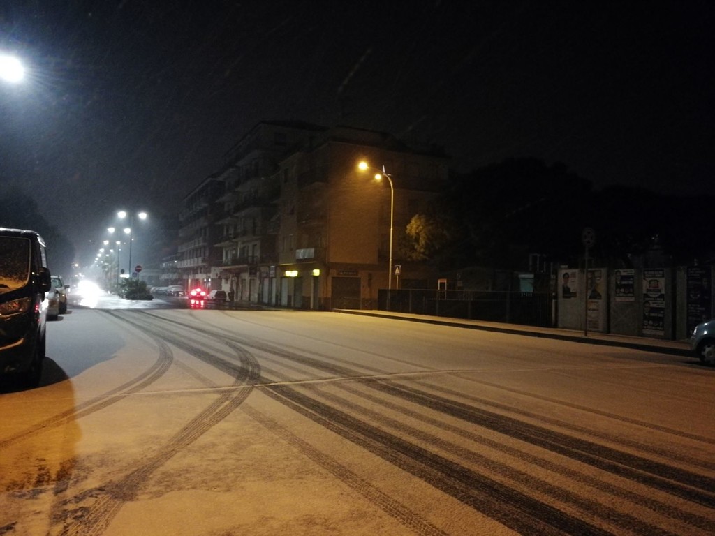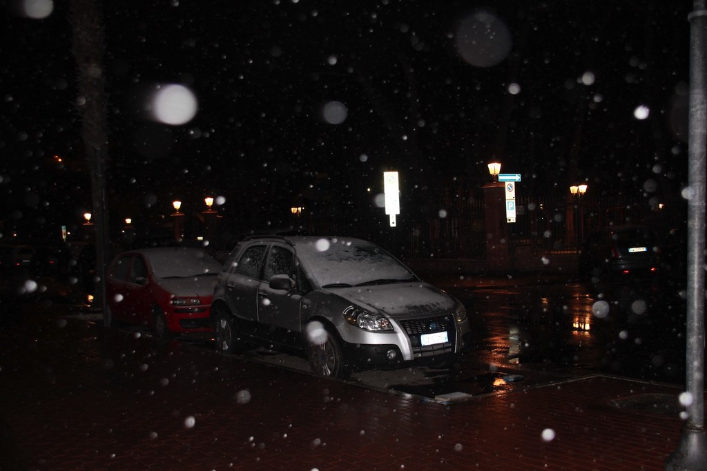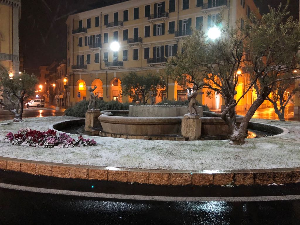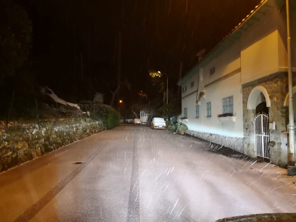 Scende la neve sul Ponente: tetti imbiancati e spazzaneve in azione in serata (Foto)