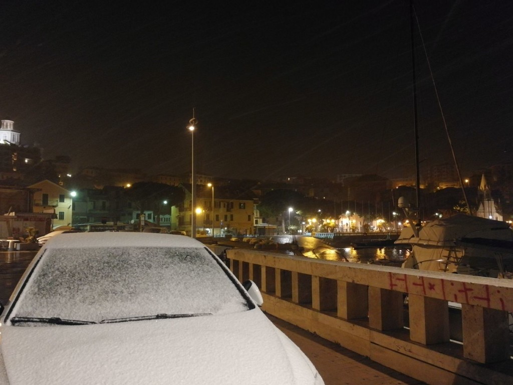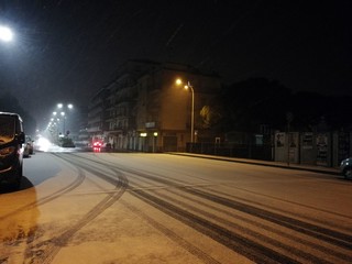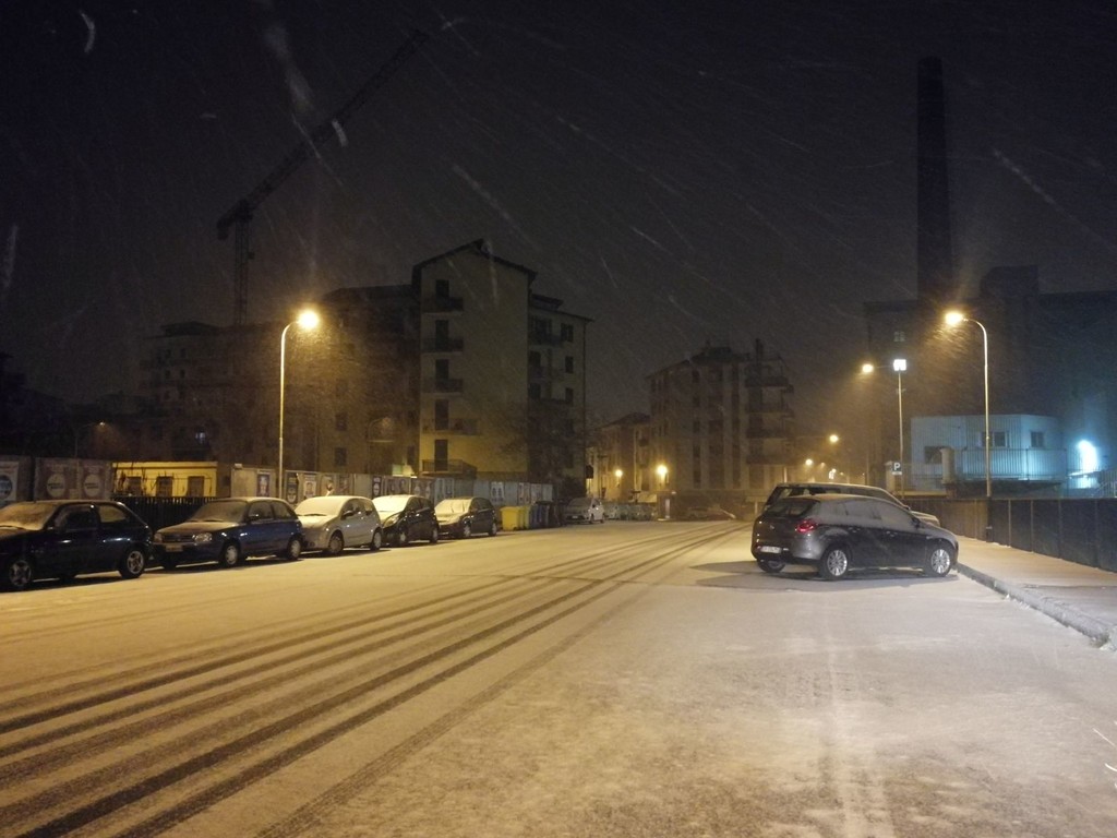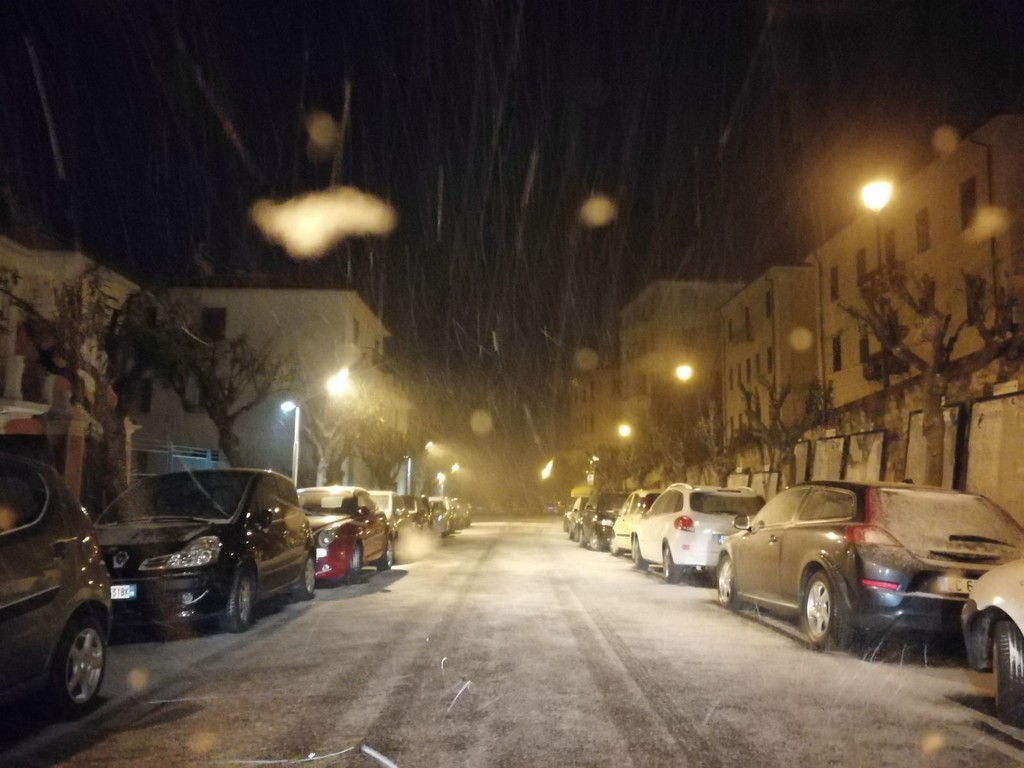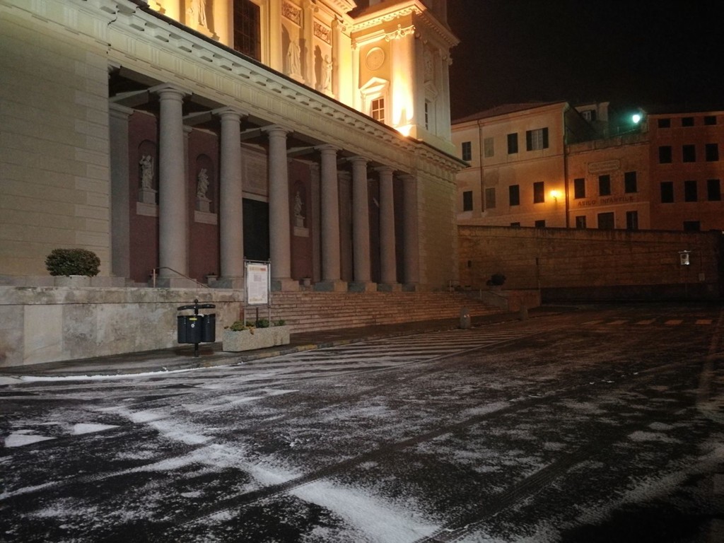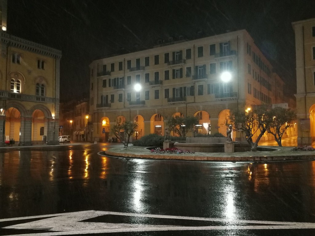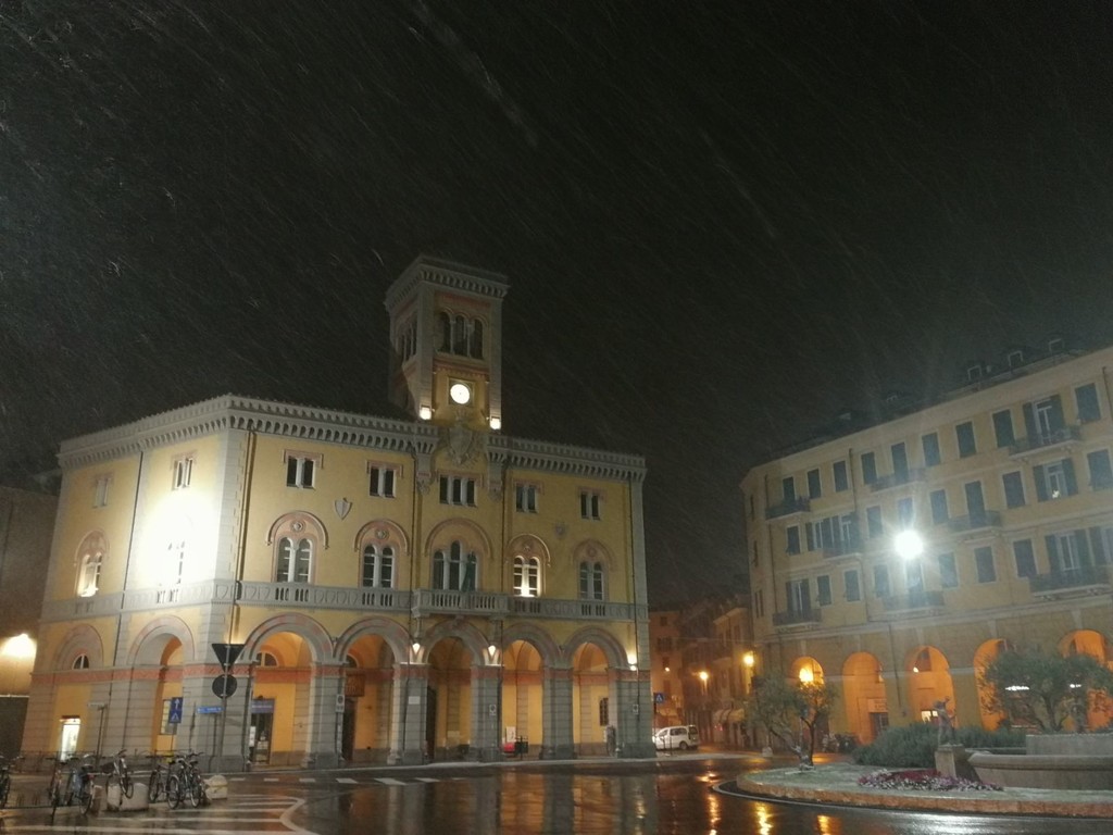 L'allerta 'rosso' scatterà a mezzanotte e sarà in vigore fino alle 12 di domani. Neve in collina e sulle montagne. Si stanno imbiancando soprattutto le città all'estremo ponente della provincia.