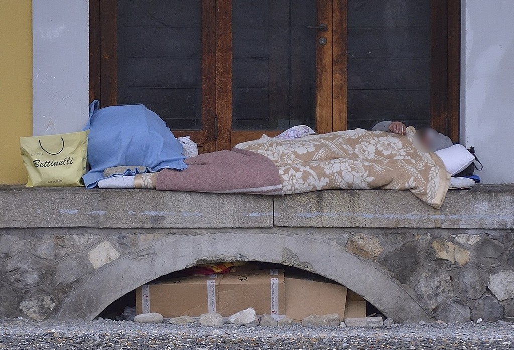 Sanremo: malgrado il forte freddo e la pioggia, il giaciglio di un senza tetto all'esterno degli ex magazzini FS