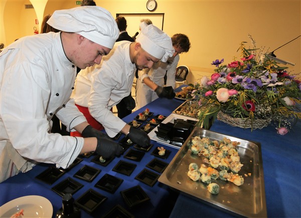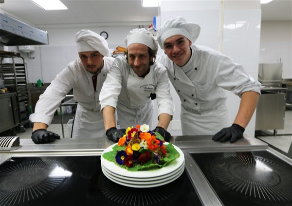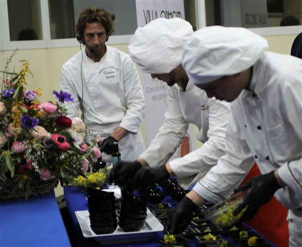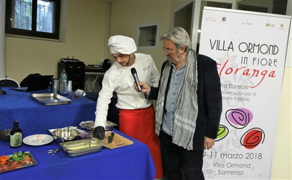 A seguire l’Associazione Ristoranti della Tavolozza ha proposto il primo show cooking con la cucina con i fiori realizzato da Federico Lanteri che con lo staff del ristorante Il Torrione di Vallecrosia ha proposto tre preparazioni particolarri: un bon bon di gambero rosso di Sanremo con foglia di nasturzio, il cappon magro con pesto e fiori di cime di rapa e il classico biscotto alla lavanda con crema ai fiori di arancio.