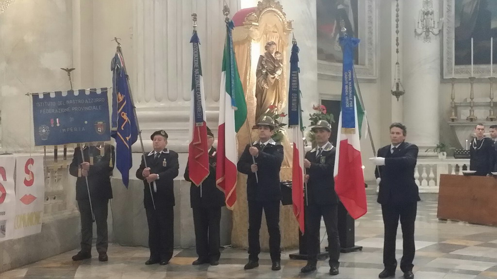 Presenti i rappresentanti delle Associazioni Combattentistiche e d'Arma della Provincia. Ad officiare il rito religioso sono stati il Vescovo della diocesi di Albenga- Imperia Mons. Guglielmo Borghetti, Antonio Suetta Vescovo della Diocesi di Ventimiglia Sanremo e l'Ordinario militare per l'Italia Mons. Santo Marcianò che, per la prima volta, ha fatto visita in provincia di Imperia.