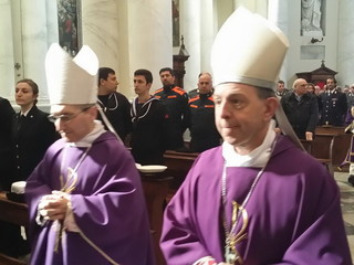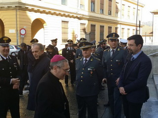 Un clima di raccoglimento e di preghiera ha accompagnato la sentita e partecipata funzione alla quale erano presenti le più alte cariche sia civili sia militari della provincia, fra cui il Prefetto Silvana Tizzano, il Questore Cesare Capocasa, il Procuratore della Repubblica Alberto Lari, il Presidente della provincia Fabio Natta.