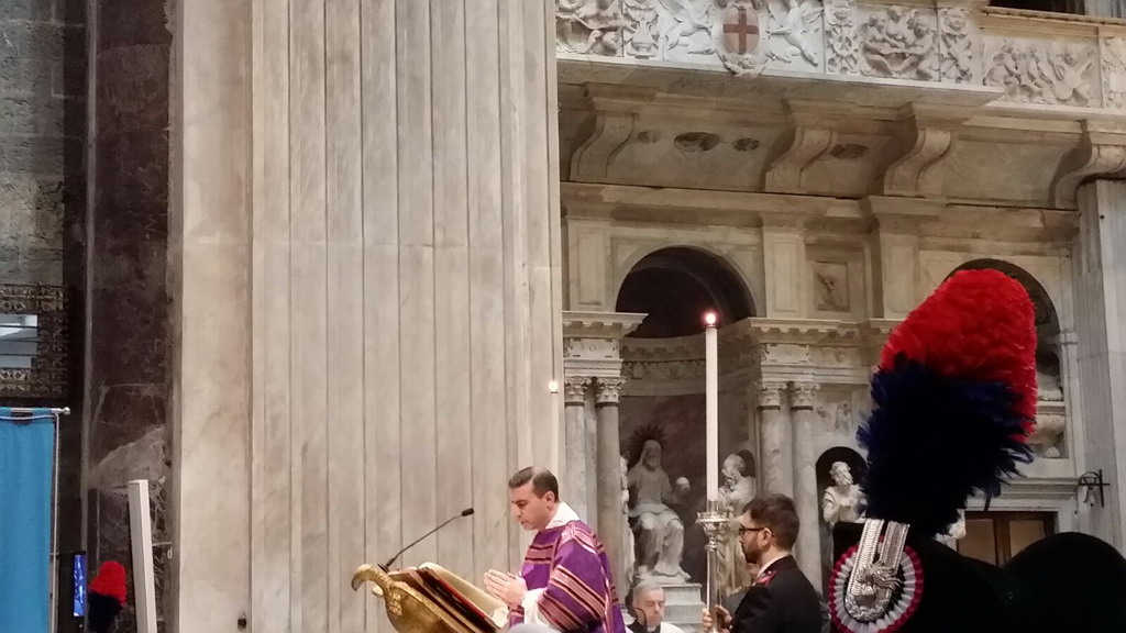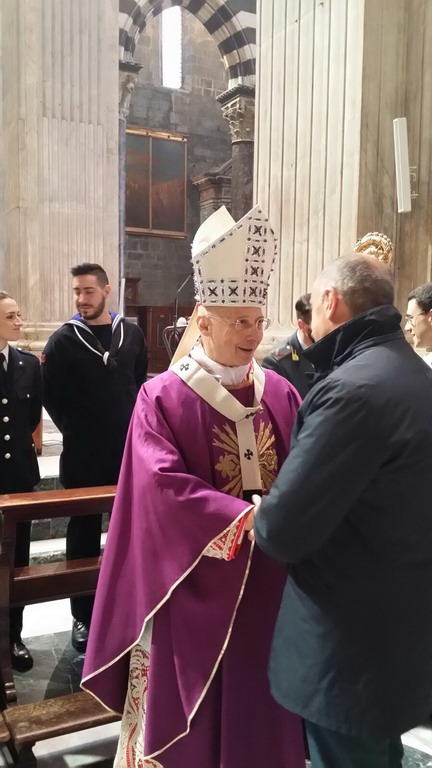 Si è svolta questa mattina a Genova, nella Cattedrale di San Lorenzo, la tradizionale celebrazione del Precetto Pasquale Interforze per i militari di ogni ordine e grado e i componenti delle Forze di Polizia ad ordinamento militare e non in servizio nell'ambito territoriale della Regione Liguria.