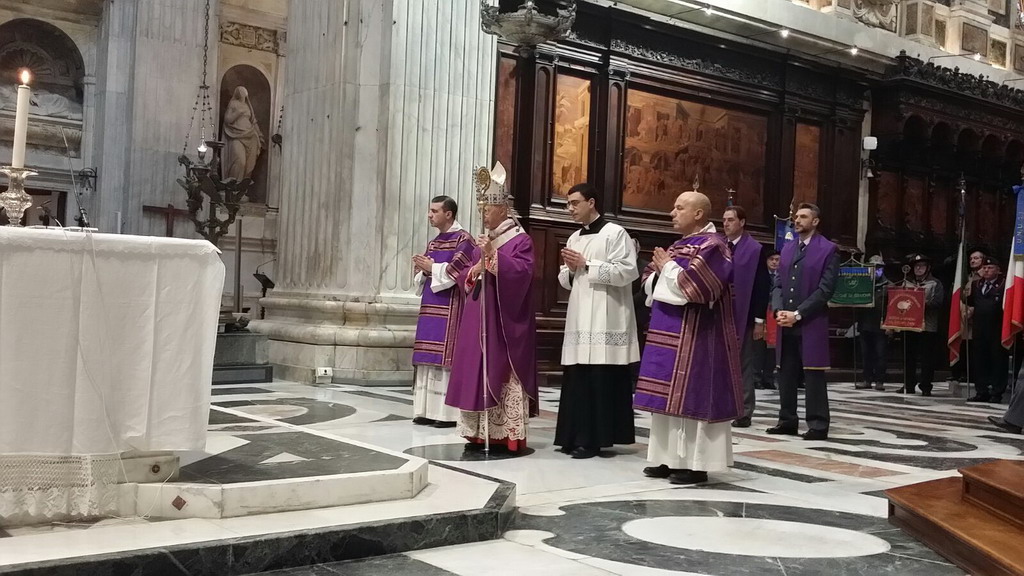 La celebrazione Eucaristica è stata presieduta dal Cardinale Angelo Bagnasco, Arcivescovo metropolita di Genova, con la Concelebrazione di tutti i Cappellani Militari della Liguria.