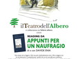 Un evento speciale, un reading "da non dimenticare" con Davide Enia che presenta il suo ultimo libro "Appunti per un Naufragio" (edizioni Sellerio) è l'appuntamento che Il Teatro dell'Albero dà a tutto il suo pubblico per dare inizio alla 15a Rassegna Teatrale L'Albero in Prosa 2018 che partirà ufficialmente il 24 marzo come da programma.