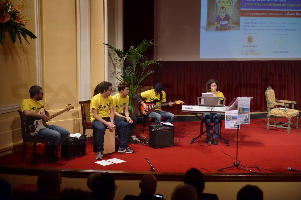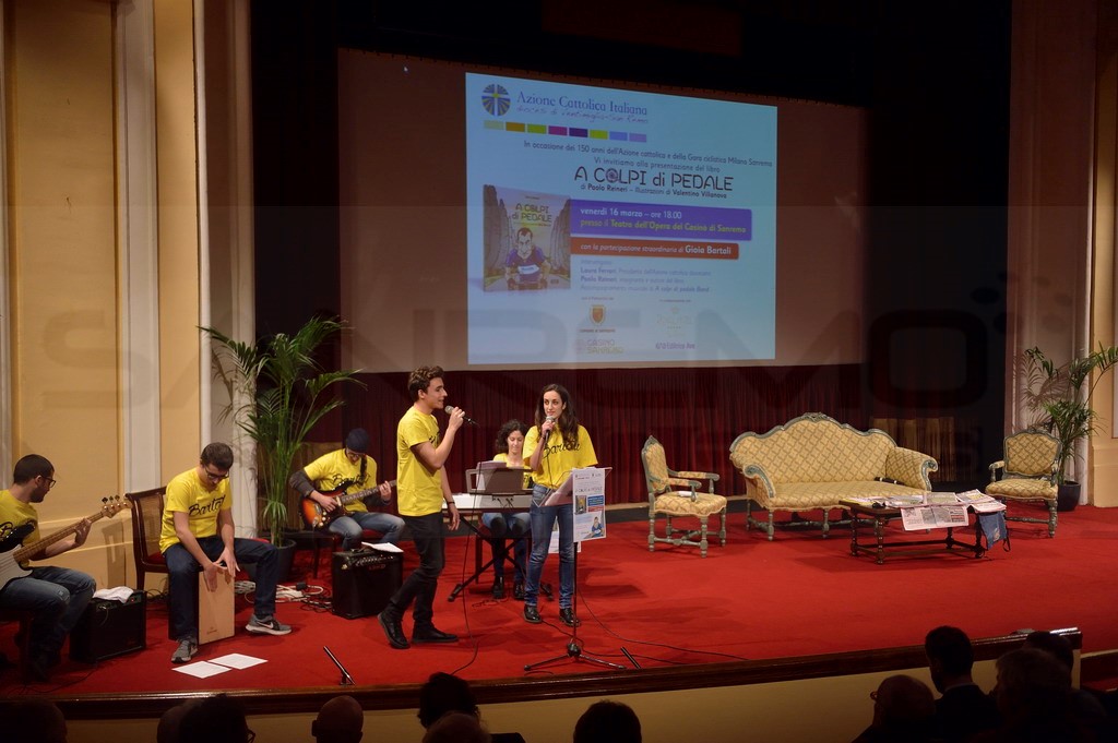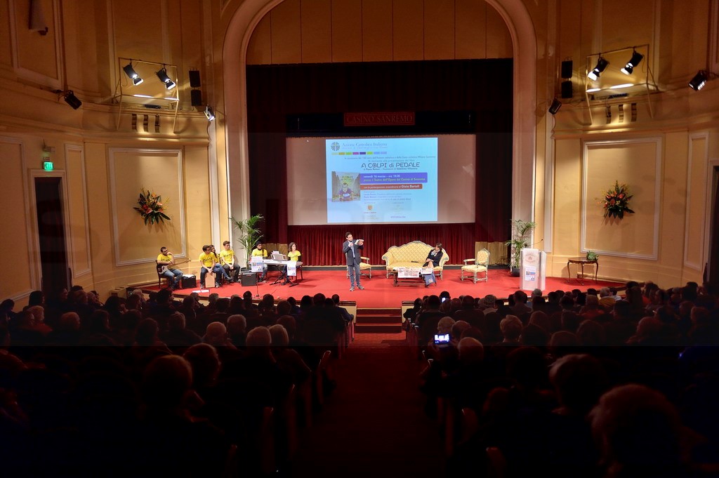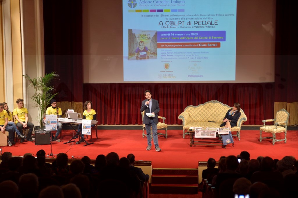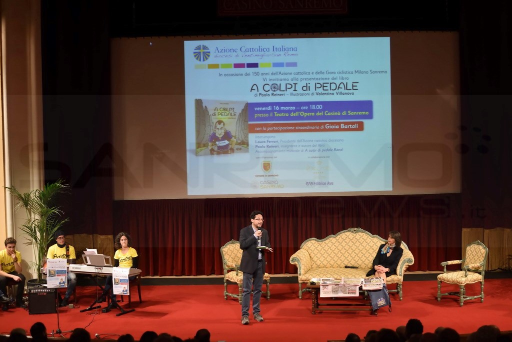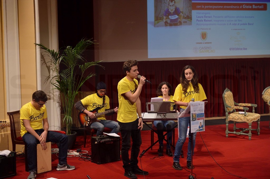 Alla presentazione, al Teatro dell’Opera del Casinò, la partecipazione straordinaria di Gioia Bartali, nipote del grande Gino. Sono intervenuti anche: Laura Ferrari, presidente dell’Azione Cattolica diocesana e Paolo Reineri, insegnante e autore del libro. Previsto l’accompagnamento musicale “A colpi di pedale Band”.