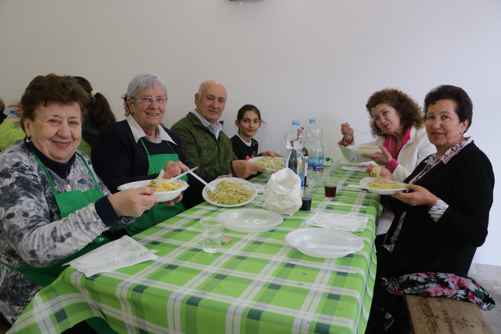 A conclusione della ‘pestata’ e della raccolta firme, si è dato inizio alla spaghettata, organizzata dalla Pro Loco di Pontedassio, che con l’occasione ha inaugurato la nuova sede. Naturalmente il menù ha previsto linguine al pesto, utilizzando quello appena prodotto.