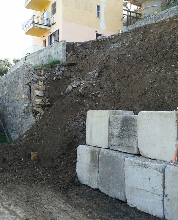 Ad oggi sono stati posati circa l’80% dei blocchi di cemento portati in zona per la sistemazione a protezione del muro franato.
