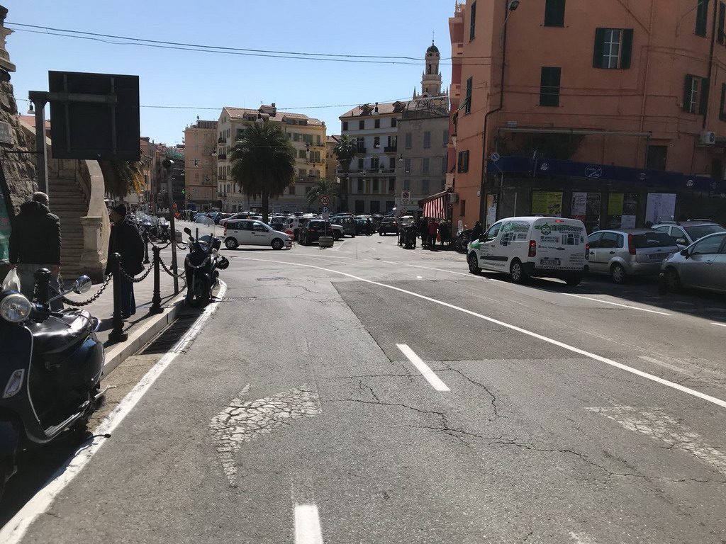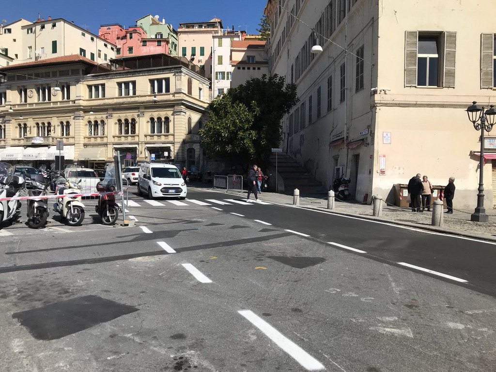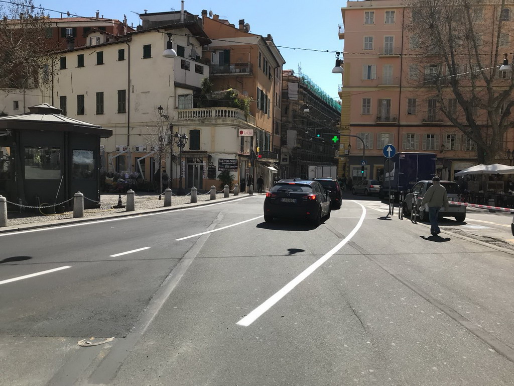 Sono state disegnate le linee a terra che delimitano i nuovi posteggi (saranno al centro della piazza, dove scorreva il traffico) e le due corsie per lo scorrimento del traffico, una a Levante (con il doppio senso di marcia) e una a Ponente (solo a scendere). In questo modo, grazie anche ai varchi previsti, il traffico potrà scorrere nei giorni di mercato senza il blocco che aveva spinto i commercianti della zona a firmare una petizione per chiedere al Comune un intervento.
