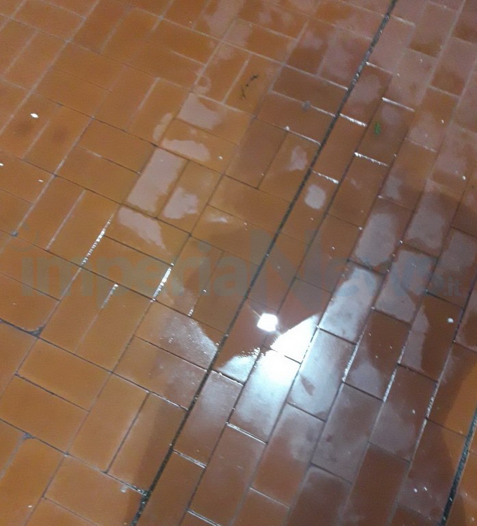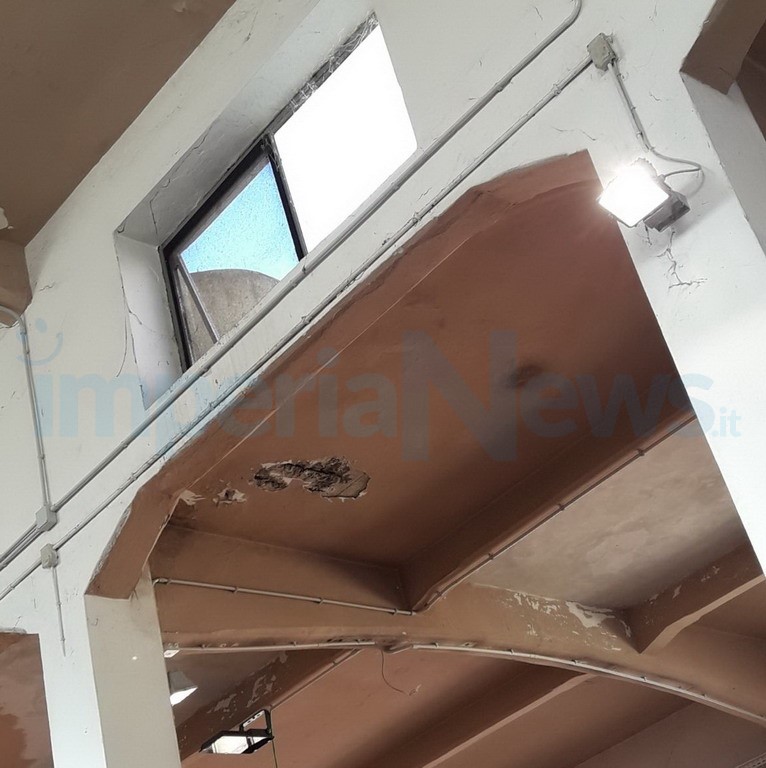 Nelle immagini e nel video che pubblichiamo, si nota lo stato di totale degrado dentro la struttura, dove piove anche sui banchi di generi alimentari, si sono formate infiltrazioni, si formano pozze d’acqua anche a distanza di giorni dai rovesci e cadono pezzi di intonaco. “Succede sempre, anche quando lavoriamo, ci piove l’intonaco sulla testa”, racconta un’esercente a Imperia News