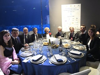 L’eccellenza dello sport ligure ancora una volta si è ritrovata in uno dei gioiello che il mondo invidia a Genova, l’Acquario. Una serata di Stelle che hanno “brillato” per dare luce e sostegno alla Gigi Ghirotti Onlus. Più di 300 ospiti per un evento unico, impreziosito dalla partecipazione di Campioni del calibro dei blucerchiati Emiliano Viviano e Fabio Quagliarella, dei rossoblù Nicolas Spolli e Davide Biraschi, l’Entella con Cesar e Catellani, Troiano, Crimi, Llullaku e Nizzetto, lo Spezia con coach Fabio Gallo accompagnato da Alberto Masi e Alberto De Francesco, il Savona Calcio con la dirigenza al completo, il tecnico Marcello Chezzi e il capitano Federico Ferrando. E ancora la Pro Recco Pallanuoto con Niccolò Gitto e Matteo Aicardi, le stelle del podismo della Cambiaso Risso Running Team Emma Quaglia e Valerio Brignone, quelle del nuoto Francesco Bocciardo (Nuotatori Genovesi-Fiamme Oro) ed Edoardo Stochino (Nuotatori Genovesi-Fiamme Oro), l’olimpico di snowboard Lorenzo Sommariva, il tecnico del Cus Genova Rugby Tosh Askew, i velisti Matteo Puppo e Matteo Capurro (Yacht Club Italiano) e Benedetta Bellio (Murcarolo) per il canottaggio con anche la dirigenza Elpis.