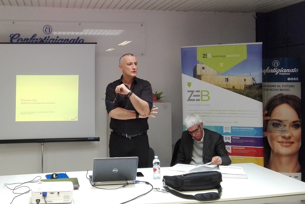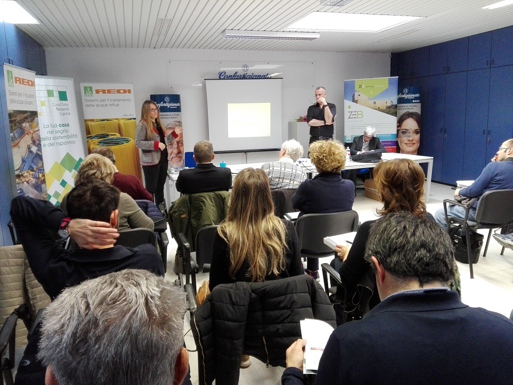 Si è svolto ieri pomeriggio, presso la sede della Confartigianato a Sanremo, il terzo appuntamento per professionisti ed imprese sull’efficienza energetica "Dalla conoscenza per creare competenza nzeb". Si tratta di un ciclo di sei appuntamenti organizzato dal network CasaClima Liguria in collaborazione con la Confartigianato e l’impresa ZeroEnergy Builldings. A questo terzo incontro, in cui è stato approfondito l’aspetto del nuovo sistema edificio/impianto, Ventilazione Meccanica Controllata (con il contributo di Zehnder) e del recupero delle acque grigie (con il contributo di redi) hanno partecipato ingegneri, architetti, geometri e artigiani.