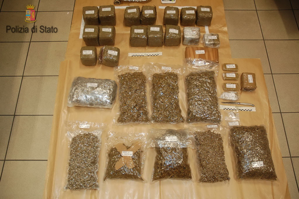 In casa l'uomo aveva 30 chili di droga tra marijuana ed hashish oltre ad un 1 chilo di cocaina.