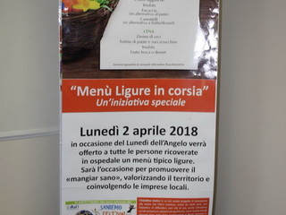 L'iniziativa voluta e promossa dalla Vice Presidente e Assessore alla Sanità della Liguria, Sonia Viale, prevede un menù composto da piatti tipici della tradizione culinaria ligure e vedrà coinvolta la maggior parte degli ospedali liguri variando le portate, a seconda della zona, in modo da valorizzare le diverse tipicità territoriali.