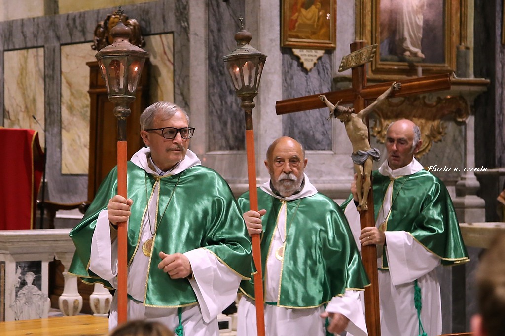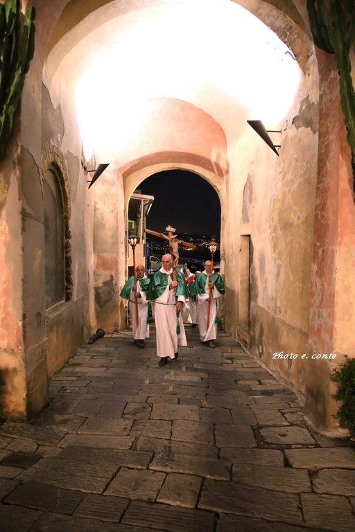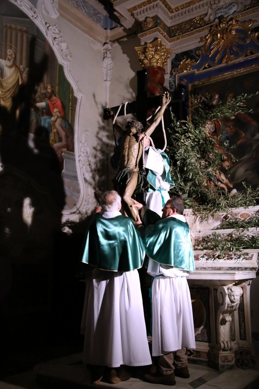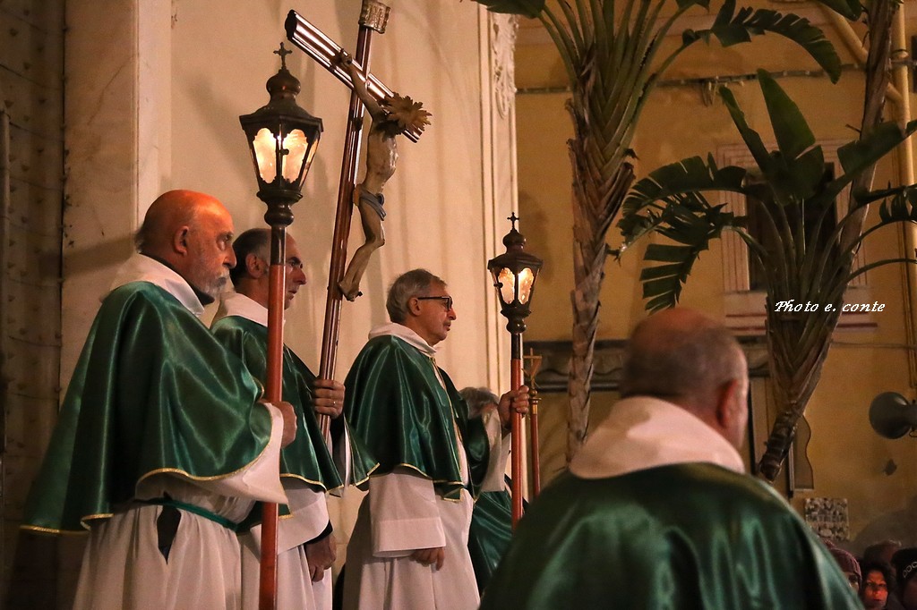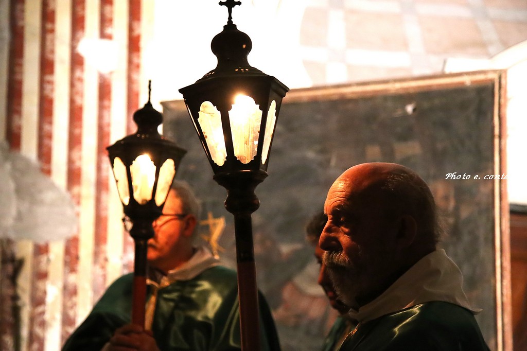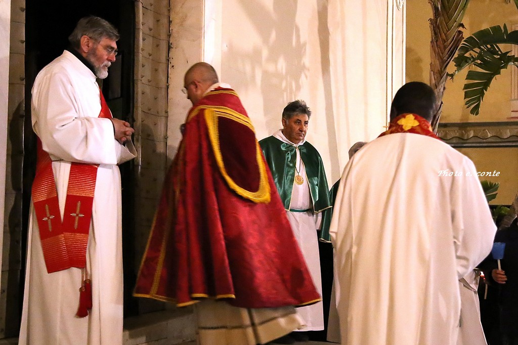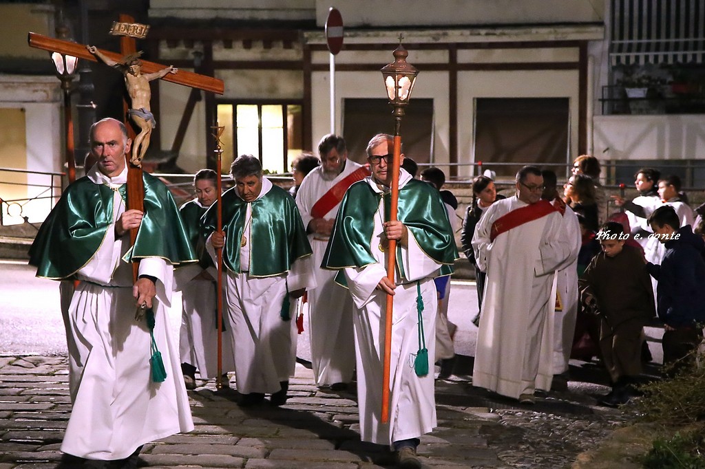 Ha officiato il Parroco Abate Don Luca Salomone coadiuvato da Padre Adolfo e dai Diaconi Achille ed Aldo. Hanno partecipato i componenti della Confraternita con le loro antiche lanterne, il Cristo processionale e i vestimenti che li contraddistinguono.