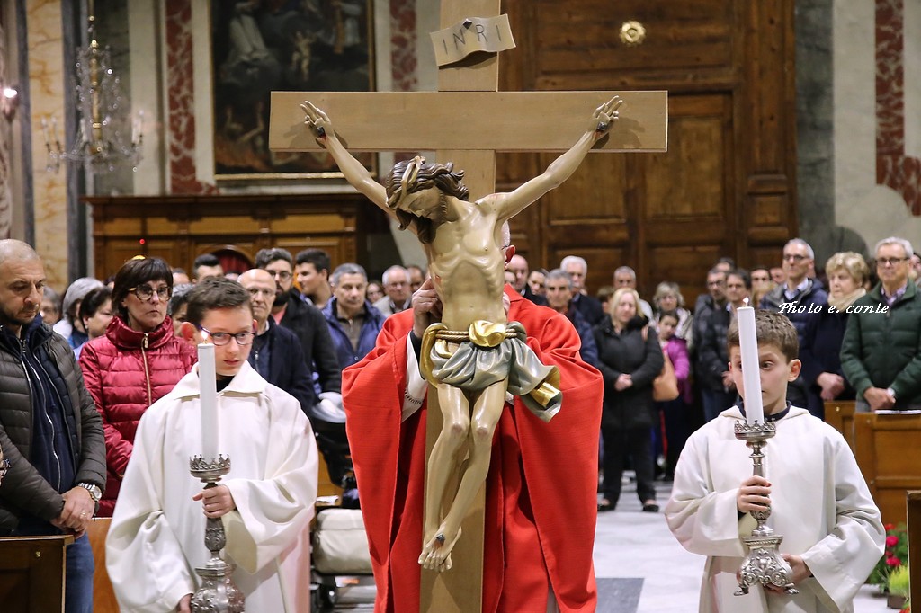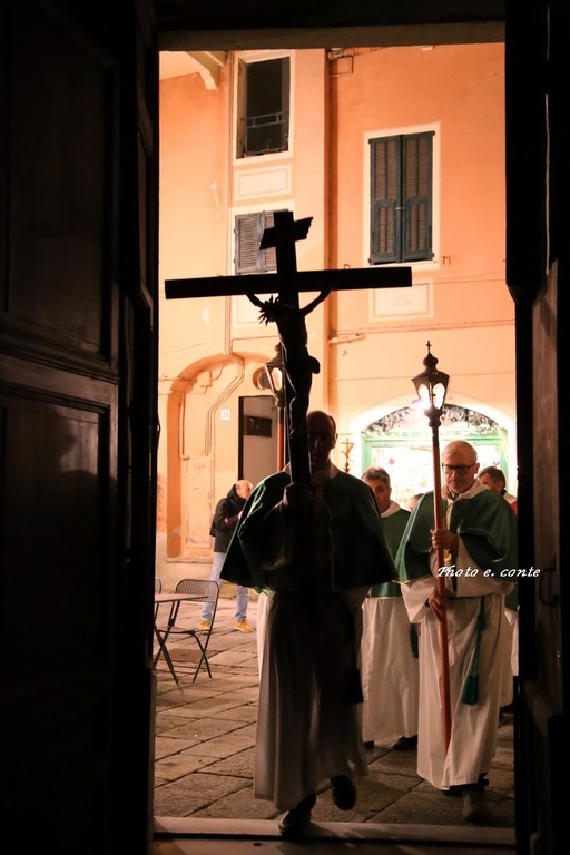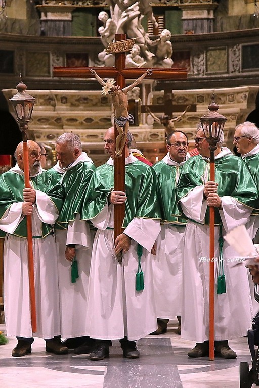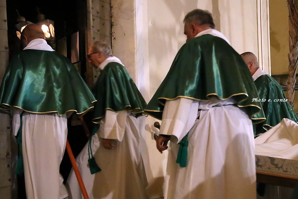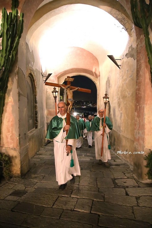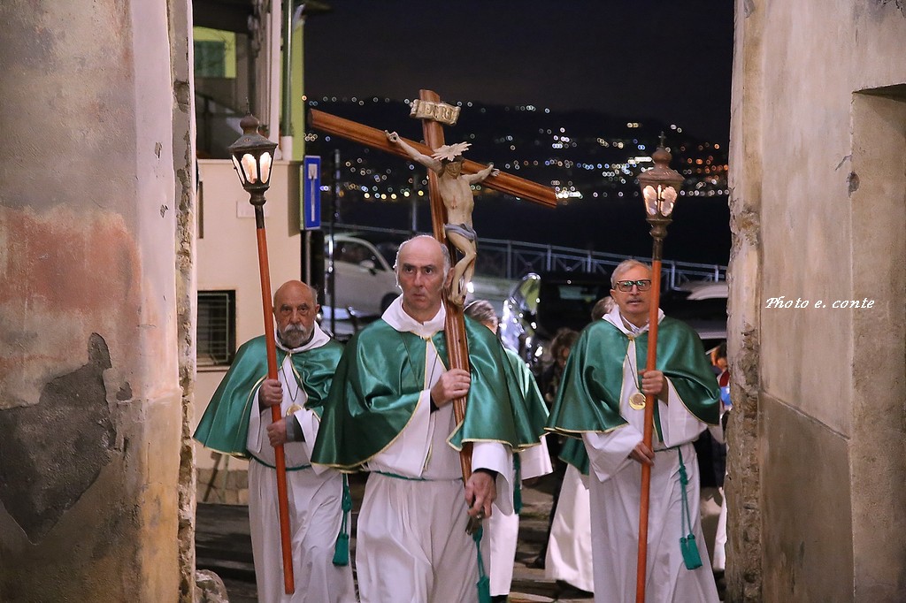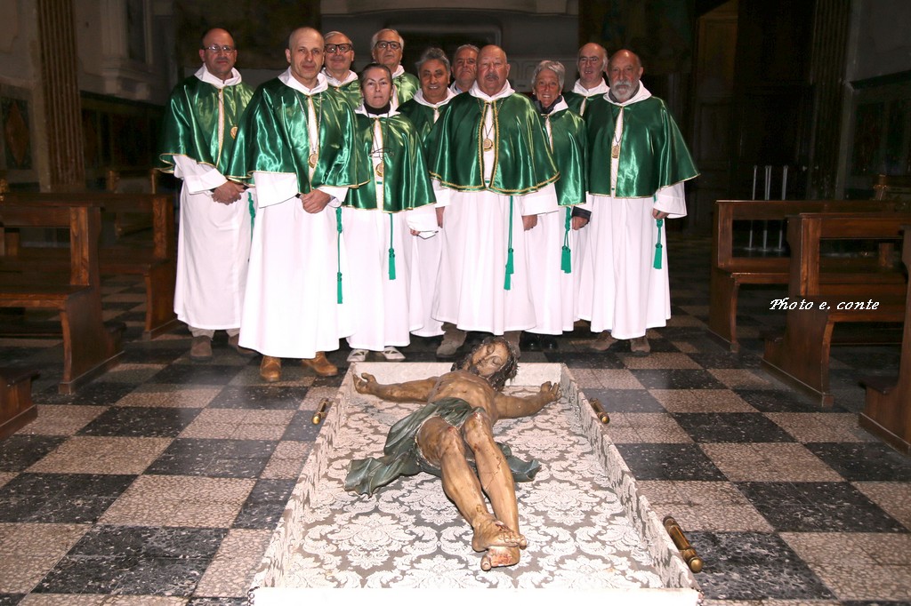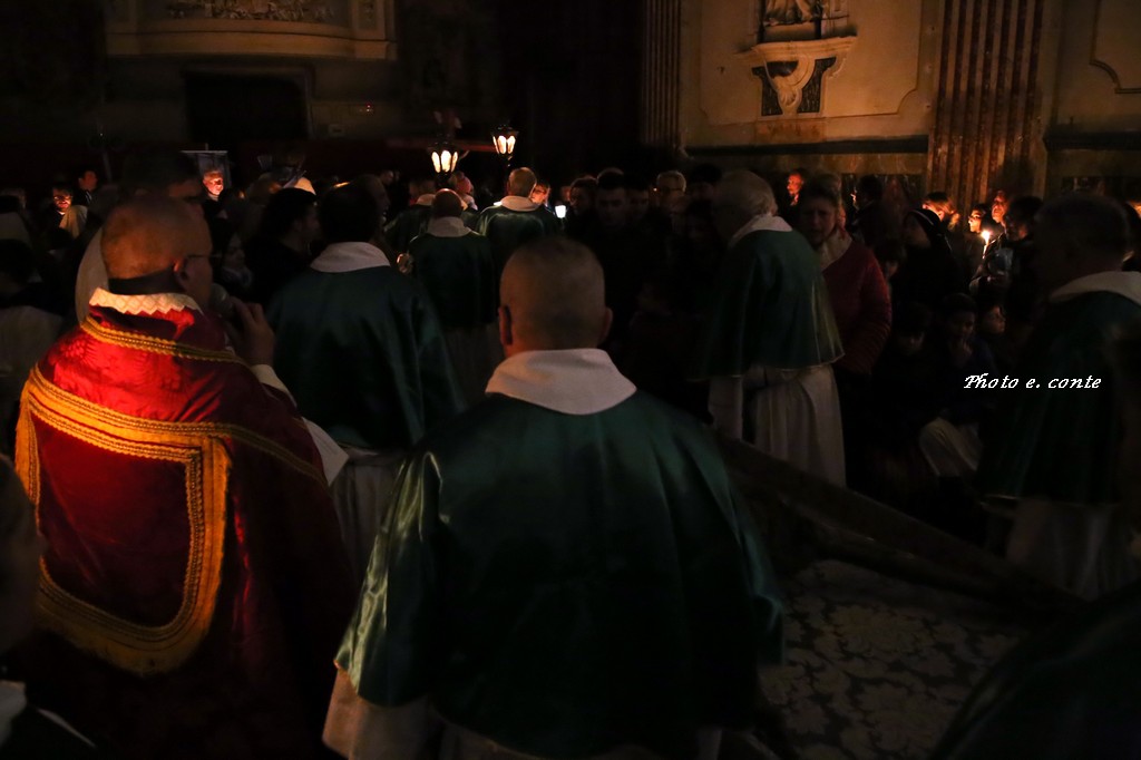 Ha officiato il Parroco Abate Don Luca Salomone coadiuvato da Padre Adolfo e dai Diaconi Achille ed Aldo. Hanno partecipato i componenti della Confraternita con le loro antiche lanterne, il Cristo processionale e i vestimenti che li contraddistinguono.