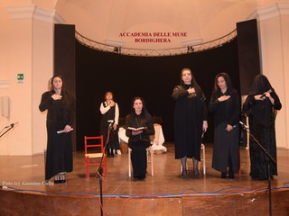 "Una produzione dell'Accademia Delle Muse realtà associativa locale che opera da tredici anni e promuove l'arte del teatro, in scena tutte donne che con impegno hanno interpretato un dramma, che comincia e finisce con un funerale, proprio nella serata del venerdì Santo. Una messinscena sobria ed essenziale in cui emergono le passioni represse delle figlie di Bernarda madre-carceriera".