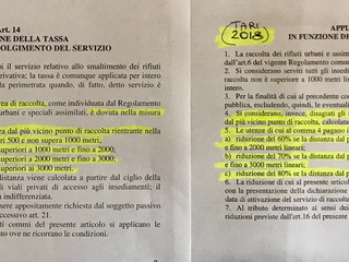 Per la lontananza dalla raccolta tra 2 e 3 km. l’anno scorso la Tari da pagare era in misura pari al 20% della tariffa, quest’anno c’è la ‘riduzione’ del 70%. Se la distanza di conferimento della raccolta da parte dell’utenza supera i 3 km. nel 2017 si pagava il 10% della tariffa, nel 2018 c’è ‘la riduzione’ del 80%. Quindi, è evidente che ci sarà un aumento del 10% per tutte le fasce di distanza. I cittadini che sono già decisamente penalizzati dalla lontananza dalla raccolta dovranno ora pagare di più.
