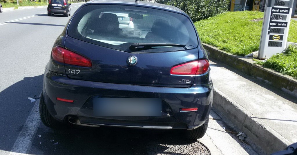 “Ieri mattina, uscendo di casa ho trovato la mia vettura, una Alfa Romeo 147 colore blu tamponata e con la ruota posteriore sinistra danneggiata e completamente girata. Qualcuno deve sicuramente avere visto in quanto chi mi ha tamponato ed ha agganciato la ruota, sollevato la macchina, rovinato il paraurti e spostata di un metro. Chi ha notizie mi chiami al 3483632552.