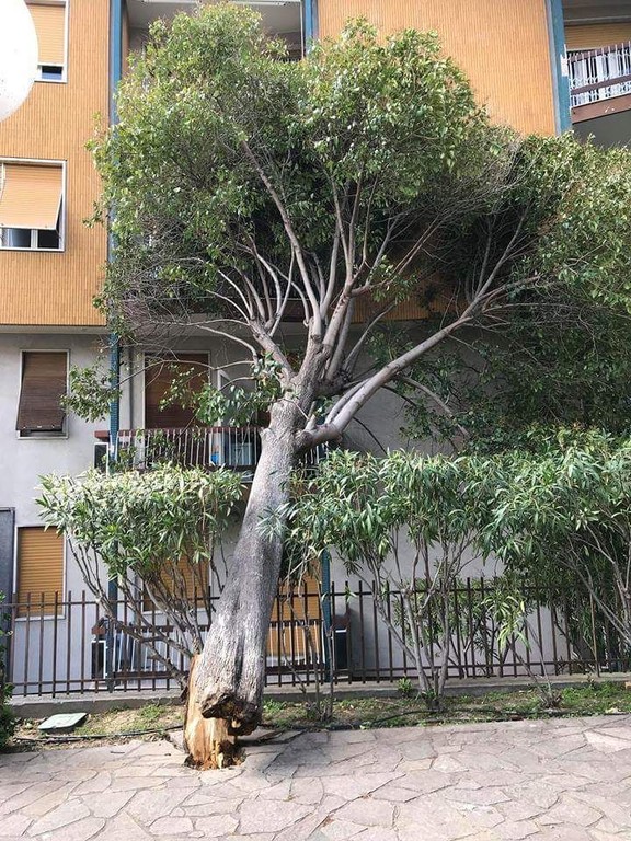 Bordighera: albero abbattuto dal vento si accascia su una palazzina in corso Europa