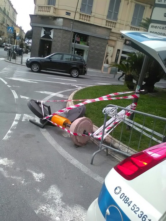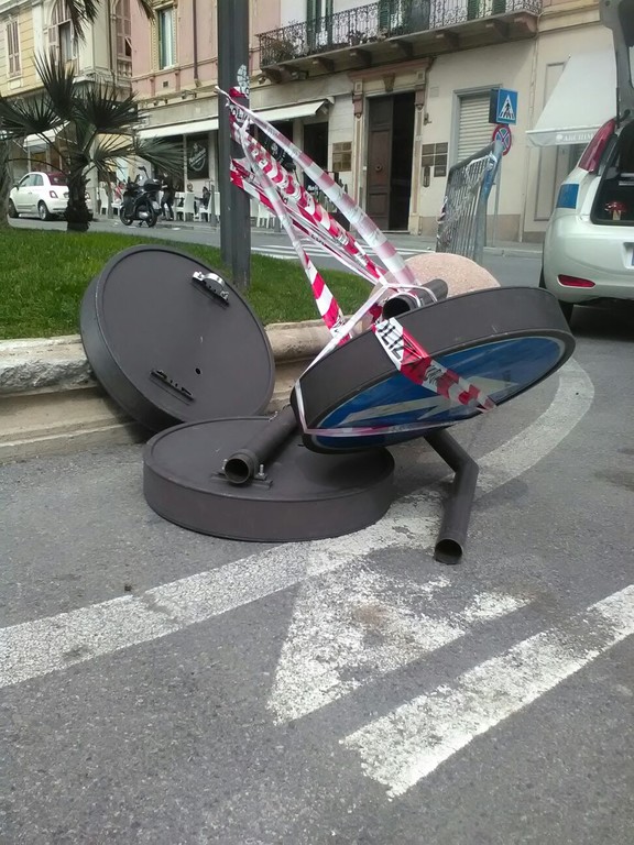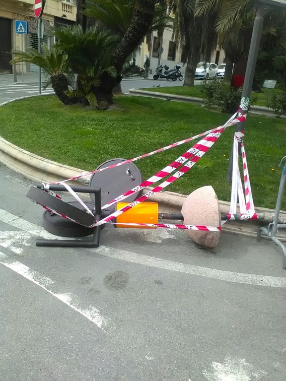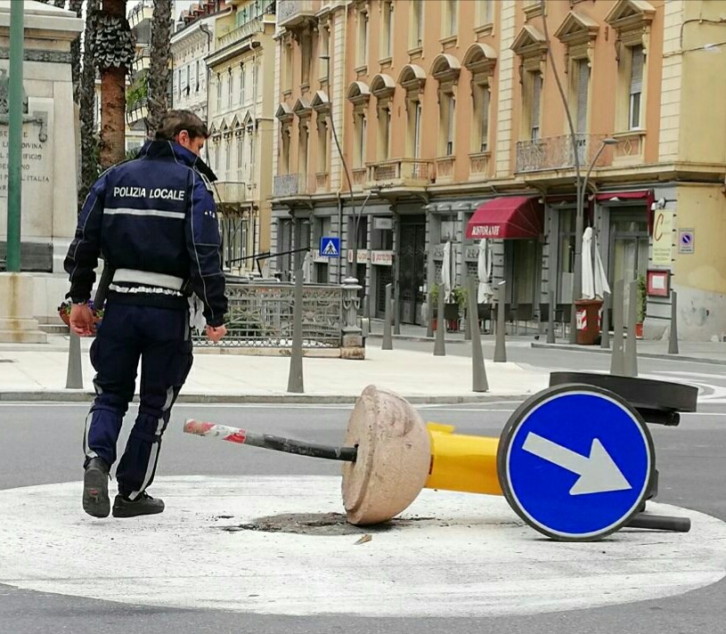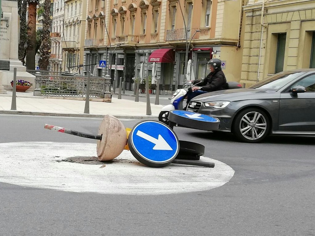 Sanremo: spartitraffico divelto in via Roma, è stato un automobilista scoperto grazie alle telecamere (Foto)
