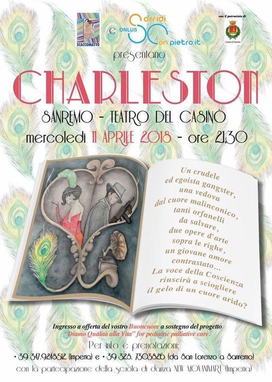 Mercoledì alle 21:30, al teatro del Casinò di Sanremo si terrà lo spettacolo Charleston. In scena gli 'Scacco Matto', compagnia teatrale composta da infermieri del Reparto Psichiatrico dell'Ospedale di Imperia e da parenti e amici sensibili. Un evento possibile grazie alla concessione del patrocinio gratuito della Asl1 di Imperia e del Comune di Sanremo e provincia.