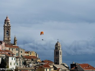 Un parapendista, che si era lanciato dalle montagne dell'entroterra, ha dato spettacolo oggi nel cielo sopra Cervo.