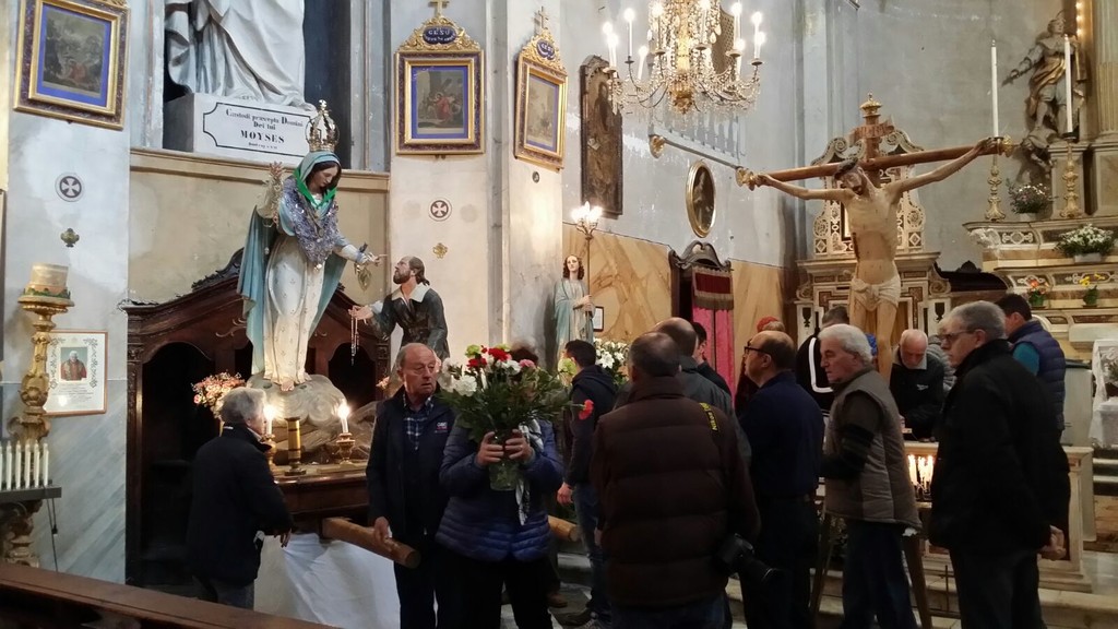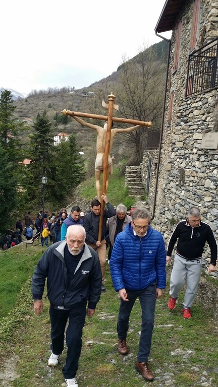 Secondo la tradizione, moltissimi devoti e fedeli, partendo dalla Collegiata dell’Assunta, hanno portato ed accompagnato la statua della Madonna, dal peso di 420 chili, e pesanti croci sulle alture del monte soprastante Triora, il “Monte Forcarum”, dove nel passato si eseguivano le pene capitali.
