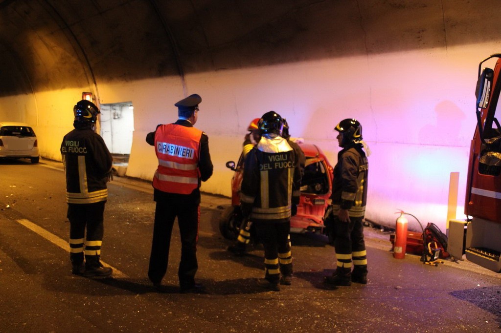 Spettacolare incidente, per fortuna senza gravissime conseguenze, questa sera poco dopo le 20.30, all’interno della galleria tra Valle Armea e Taggia, sull’Aurelia Bis.