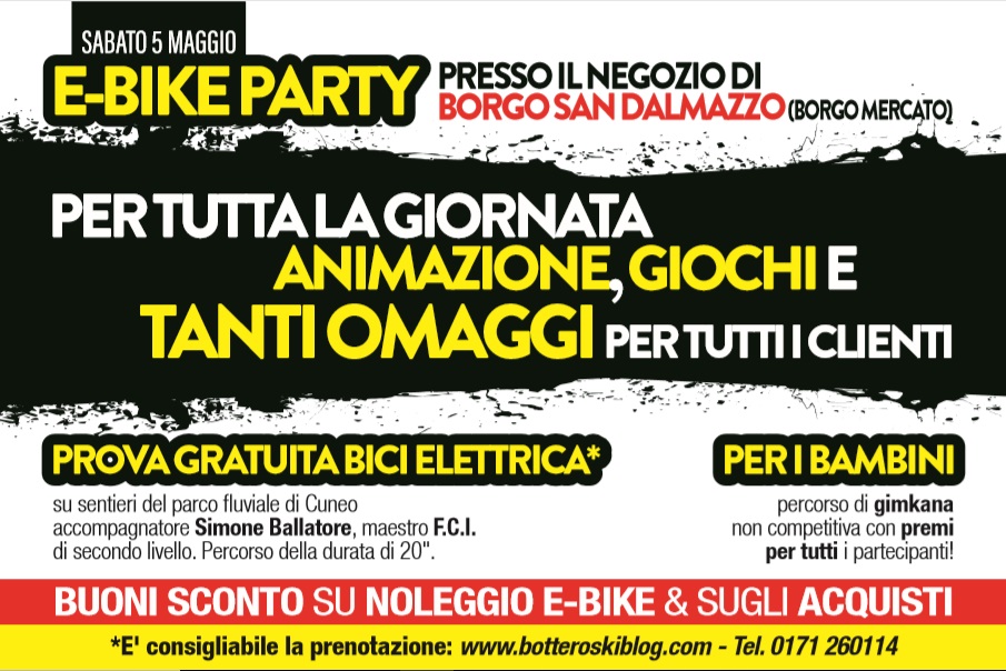 Link per prenotarsi: http://www.botteroskiblog.com/2018/04/03/e-bike-party-appuntamento-il-5-maggio/