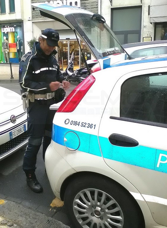 Sanremo: incidente in via Roma, scooter centra un'auto e finisce sull'altra corsia (Foto)