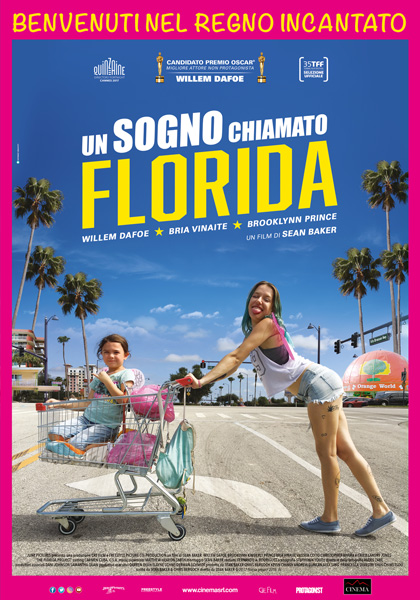 - UN SOGNO CHIAMATO FLORIDA – ore 21.00 – di Sean Baker - con Willem Dafoe, Brooklynn Prince, Bria Vinaite, Valeria Cotto, Christopher Rivera – Commedia/Drammatico - "La piccola Moonee ha 6 anni e un carattere difficile. Lasciata libera di scorrazzare nel Magic Castel Hotel alla periferia di Disney World, la bambina passa il suo tempo con un gruppo di monelli del posto e i suoi scherzi non sembrano preoccupare troppo la giovane madre Halley che, dovendosi barcamenare in una situazione precaria come gli altri abitanti del motel, è troppo concentrata su come riuscire ad andare avanti, più o meno onestamente. L'unico che cerca di tenere insieme le cose è Bobby, il manager del Hotel…”