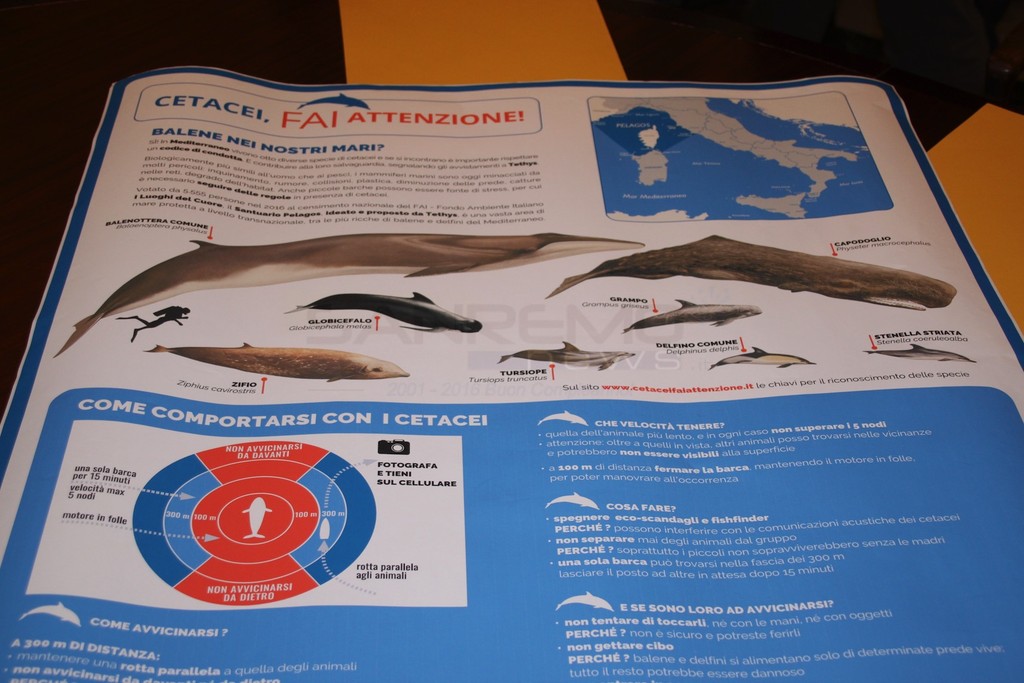 Grande l’apprezzamento anche dai rappresentanti della Guardia Costiera: “Siamo sempre impegnati per la tutela del Santuario ‘Pelagos’, questa è una zona dove queste specie sono presenti ed è un’ulteriore sublimazione di quel lavoro di sensibilizzazione che abbiamo iniziato anche nelle scuole. Aderiamo con soddisfazione a questa iniziativa e la provincia di Imperia ne è il cuore. Qui abbiamo circa 5 mila posti barca con una dozzina di piccola o media grandezza, abbiamo 200 imprese balneari coinvolte e da sempre la Guardia Costiera si pone come una sorta di sportello unico del mare”.