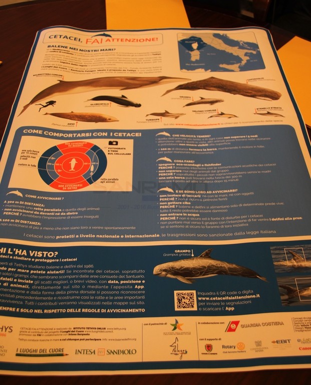 L’idea di un’area protetta transnazionale per i mammiferi marini era stata concepita e proposta dall’Istituto ‘Tethys’, che di questi animali e dell’ambiente marino del Mediterraneo si occupa da oltre 30 anni per quanto riguarda ricerca scientifica e conservazione. Grazie al contributo de ‘I luoghi del cuore’ di 12 mila euro l’istituto realizzerà il progetto “Cetacei, FAI attenzione!” che prenderà il via poco prima dell’estate. Un’iniziativa non solo per la raccolta di preziosi dati per la ricerca, ma anche per una capillare informazione del pubblico e per la mitigazione del disturbo ai cetacei arrecato dalle imbarcazioni.