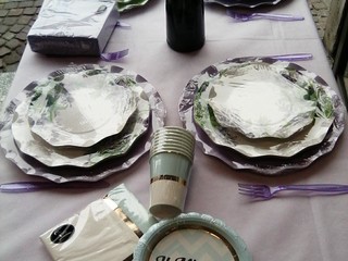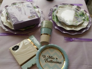 Da Carta di 2.0 ha infine trovato una variegata scelta per stile e tema di coordinati personalizzati che sicuramente verranno apprezzati dai suoi familiari e dalle altre mamme invitate. Volendo dare un tocco in più al suo buffet, Michela ha anche preso dei piccoli bancali in legno di varie dimensioni per la presentazione di taglieri misti, formaggi, grissini e frutta.