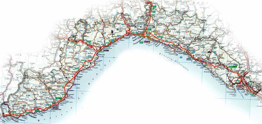 D'altra parte la descrizione della costa ligure è tipica della storia della cartografia, oltre che della letteratura non solo scientifica. Ricordiamo che il primo mitico viaggiatore che approdò alla ripa maris ligure fu Giano, mentre le prime descrizioni accurate della costa ligure appartengono a viaggiatori per mare, dal poeta Rutilio Namaziano, ultimo grande vate della Classicità, nel V secolo, al geografo arabo al-Idris, nel XII secolo, che ci ha lasciato uno straordinario resoconto geografico ed economico delle Riviere liguri (in specifico di quella che va da Nizza ad Albenga), fino a quella celeberrima del Petrarca, senza dimenticare quella mediata di Dante, che fissa i confini liguri storici tra il Varo (dalle parti dell'odierna Carros) e il Magra.
