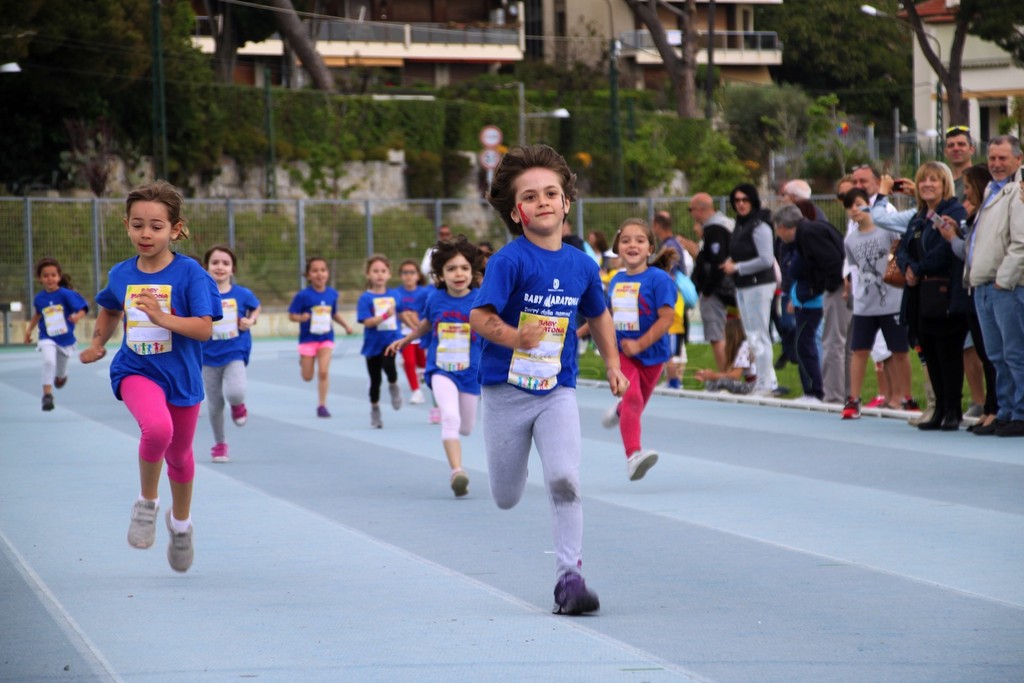 La Baby Maratona compie 20 anni e, nella sua nuova casa di Pian di Poma, festeggia con una vera e propria invasione di bimbi e famiglie. Oltre 160 bambini iscritti alle gare, grande partecipazione anche alle “maratonine” per le mamme e i papà per una vera festa dello sport sulla pista di atletica.