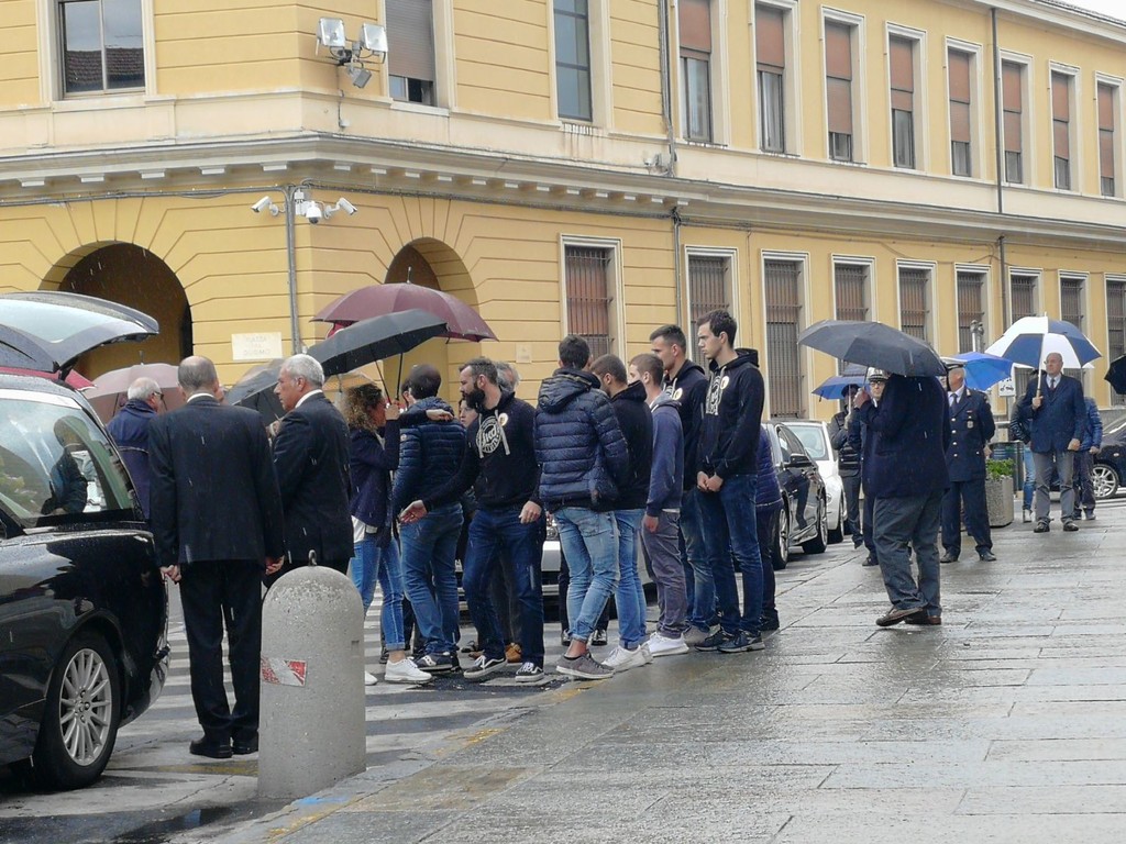 Ad accompagnare il feretro all'interno della chiesa, i giocatori della squadra maschile della Rari insieme ai familiari e la dirigenza