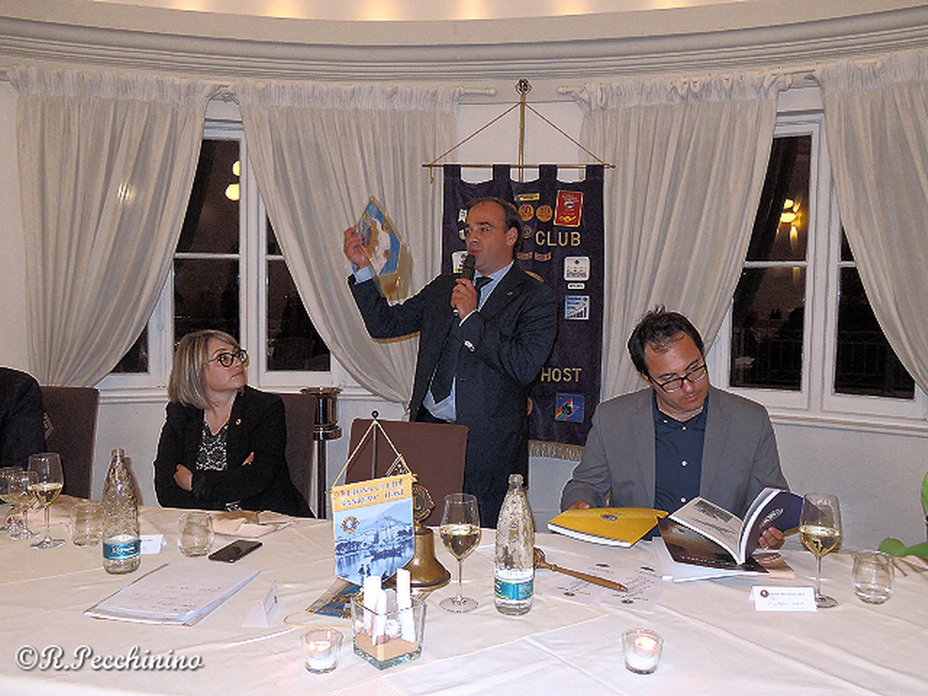 Il Cerimoniere Franco Ballestra, prima di concludere la serata, ha consegnato un mazzo di fiori alla moglie del dott. Isola e il Presidente in segno di riconoscenza per aver condiviso con i soci del Club, l'importante relazione, ha consegnato al dott. Pierre Mario Isola, il libro del 60° anniversario del Club, il libro sulle “Porte e portali di Sanremo” di Blangetti e Mannisi, edito dal Lions Club Sanremo Host, ed ha consegnato anche il prestigioso guidoncino del Club. Il colpo di campana che determinava la fine della serata, per l'occasione è stato dato su concessione del Presidente Ghiringhelli, dal dott. Pierre Mario Isola.