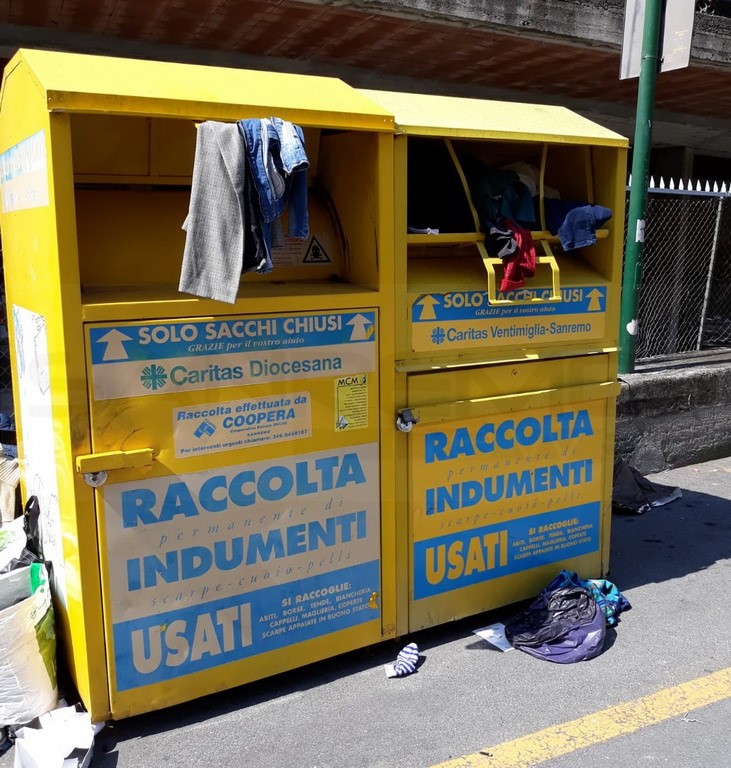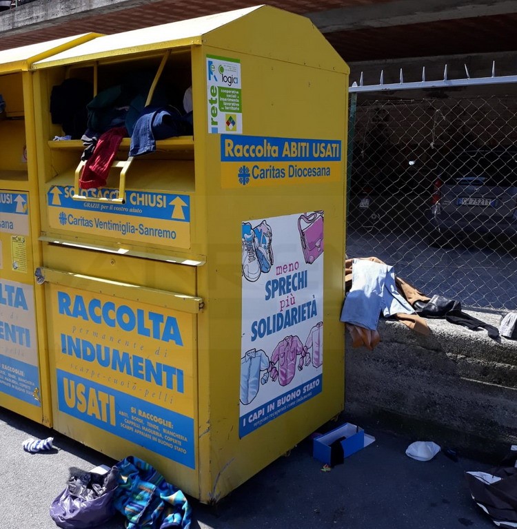 Un’altra isola ‘infelice’ a Sanremo, a causa dei soliti maleducati che non conferiscono con senso civico l’immondizia e, in questo caso, i vestiti per le persone bisognose, nei cassonetti della Caritas.