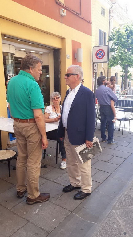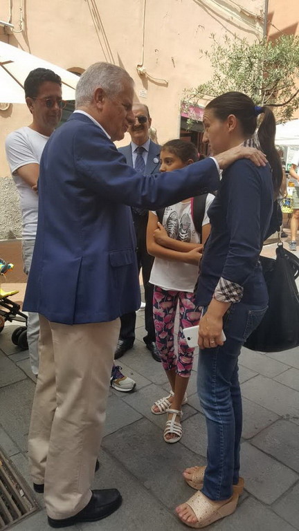 Come spesso accade nelle sue passeggiate, Scajola si è soffermato a parlare con i commercianti e gli esercenti della zona, oltre che con molti dei visitatori a passeggio per la Fiera del libro.