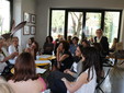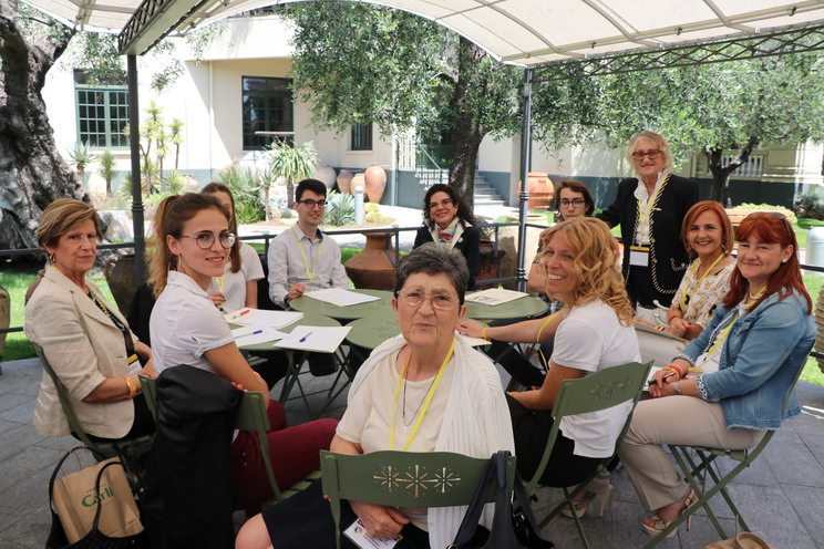 I giovani convenuti, dopo le loro esposizioni e dopo una breve pausa pranzo nell'Emporio Carli si sono divisi in gruppi di lavoro a seconda dell'argomento sceto (violenza sulle donne, solidarietà, migrazione, ecc.).