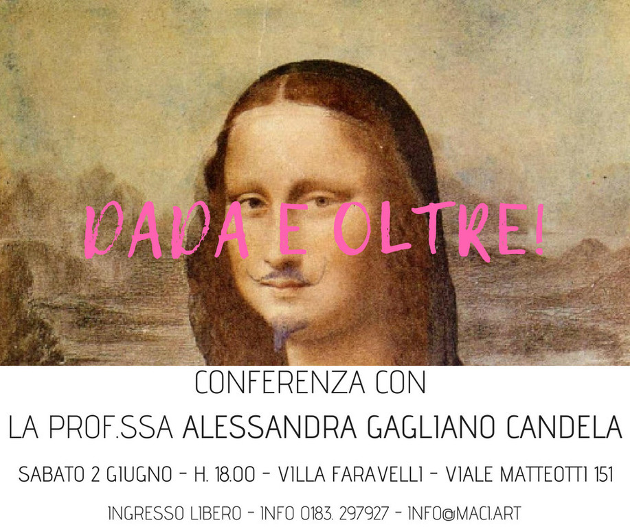 Sabato 2 giugno alle 18 il salone di Villa Faravelli ospiterà infatti la Prof.ssa Alessandra Gagliano Candela - vice Direttore e Docente di Storia dell’Arte presso l’Accademia Ligustica di Genova – presenterà al pubblico una significativa conferenza dal titolo “Dada e oltre!”.