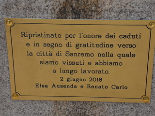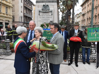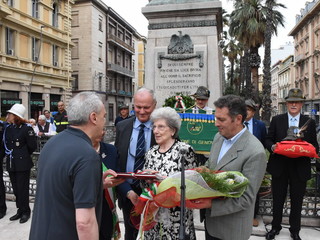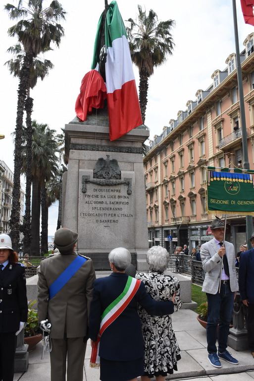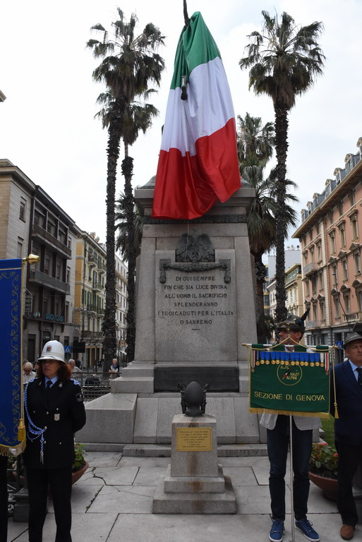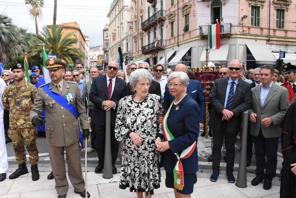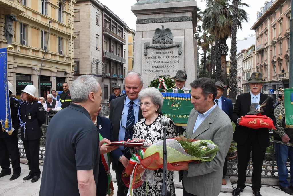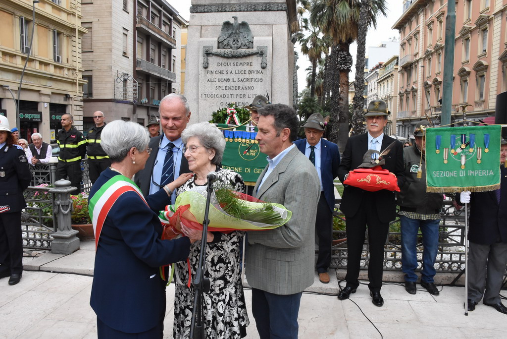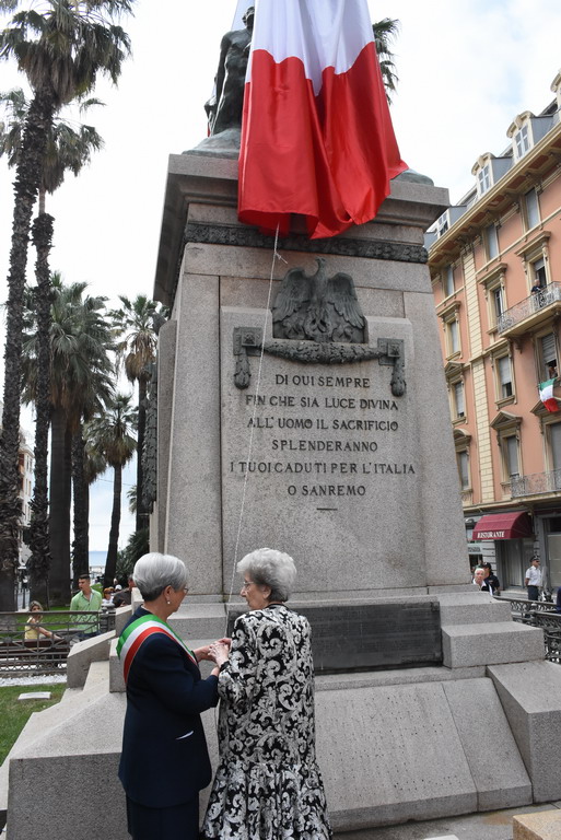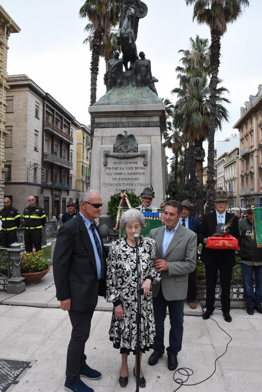 La Statua della Vittoria è stata donata alla città da Elsa Ausenda nel ricordo del marito Renato, combattente degli Alpini e recentemente scomparso. E’ stata una cerimonia a tratti emozionante, soprattutto durante l’esecuzione dell’inno di Mameli ed ascoltando le parole della signora Ausenda: “Io e mio marito ci siamo sposati molto giovani, passando insieme 66 anni. Ed ora, a due anni dalla sua scomparsa, ora sono sola ma, quando avevamo ancora la mente lucida, abbiamo deciso di donare questa statua. Volevamo che i sanremesi avessero questo monumento ai caduti, dopo averci dato tanto per il nostro lavoro”.