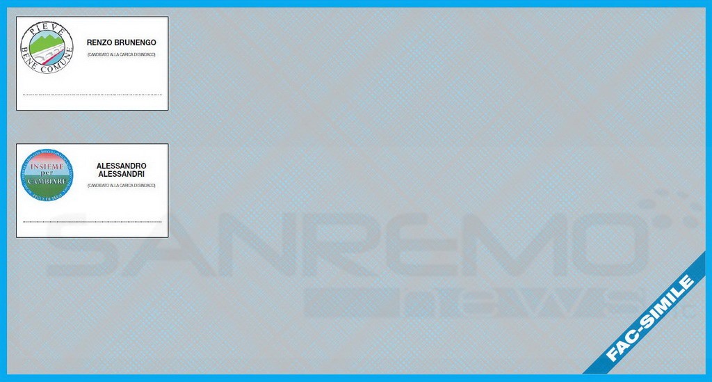 PIEVE DI TECO. In Valle Arroscia si ripropone l’identico ‘scontro’ tra i due candidati del 2013. Cinque anni fa prevalse Alessandro Alessandri con la lista civica ‘Insieme per cambiare’ con il 58,33% dei voti, davanti a Renzo Brunengo (Uniti per Pieve di Teco) con il 41,67%. Anche quest’anno per Pieve la lotta, quindi, sarà tra gli stessi contendenti. Alessandri conferma anche il nome della lista mentre Brunengo si propone con ‘Pieve Bene Comune’.