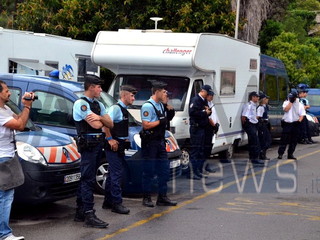 Ore 9.30 del 21 giugno 2015, la gendarmerie erige la sua linea Maginot. Sotto le altre foto di quella mattina