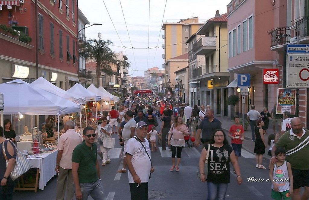 Lungo la via cittadina, oltre che nei negozi, si potrà fare shopping anche presso i banchi del mercatino di antiquariato e hobbistica presenti grazie alla collaborazione con l’Associazione Antico Doc di Vallecrosia. La via principale diventerà così una grande piazza in festa dove Bar e Ristoranti potranno estendere i propri dehors e dove sarà possibile fare shopping in notturna grazie ai commercianti che rimarranno aperti per tutta la sera. Ci sarà tanta buona musica e tanto divertimento per tutti, turisti e residenti.