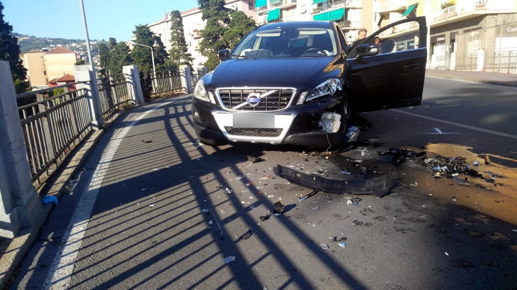 Imperia: perde il controllo dell'auto in viale Matteotti e provoca uno scontro frontale, due feriti (Foto)